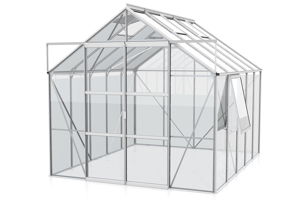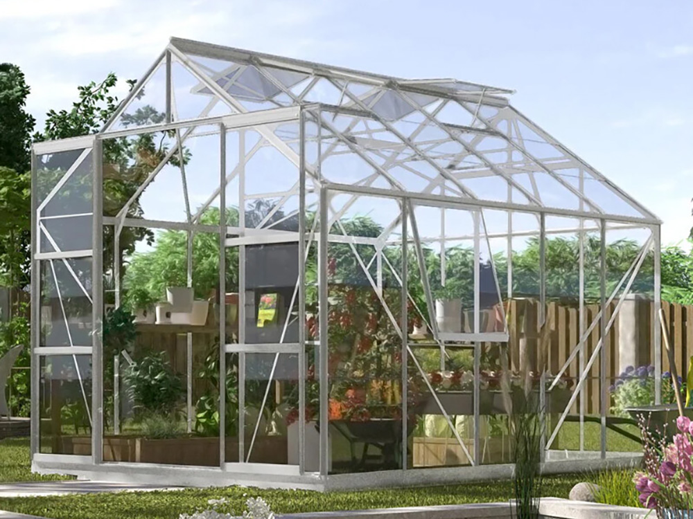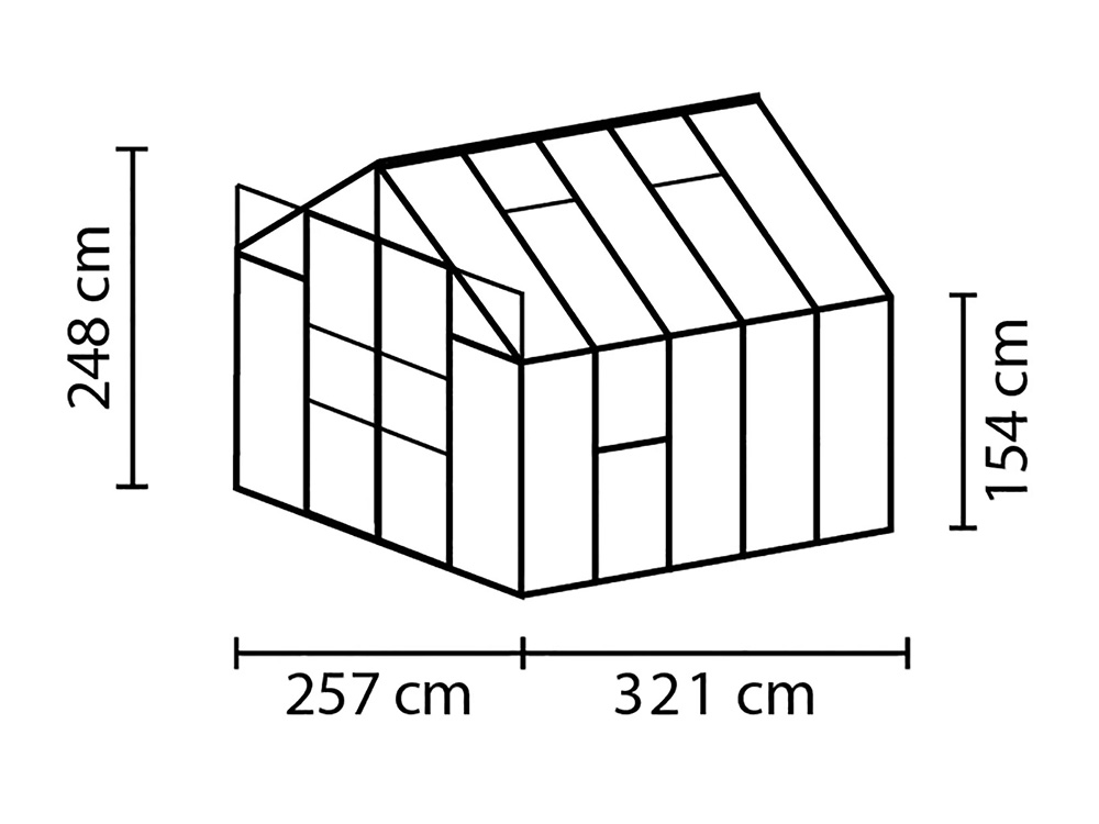 Met een royale hoogte van 248 cm en een breedte van 257 cm biedt de Jupiter meer dan genoeg ruimte. De dakrandhoogte van 154 cm zorgt voor extra stahoogte en werkgemak. Extra stevigheid wordt bereikt door hoekplaten en verstevigingen in de volledige kas, waardoor je ze zonder zorgen zwaarder kunt belasten.