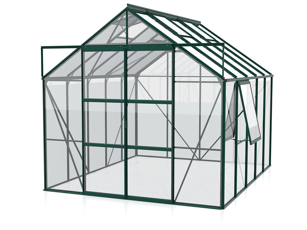 Met een royale hoogte van 248 cm en een breedte van 257 cm biedt de Jupiter meer dan genoeg ruimte. De dakrandhoogte van 154 cm zorgt voor extra stahoogte en werkgemak. Extra stevigheid wordt bereikt door hoekplaten en verstevigingen in de volledige kas, waardoor je ze zonder zorgen zwaarder kunt belasten.
