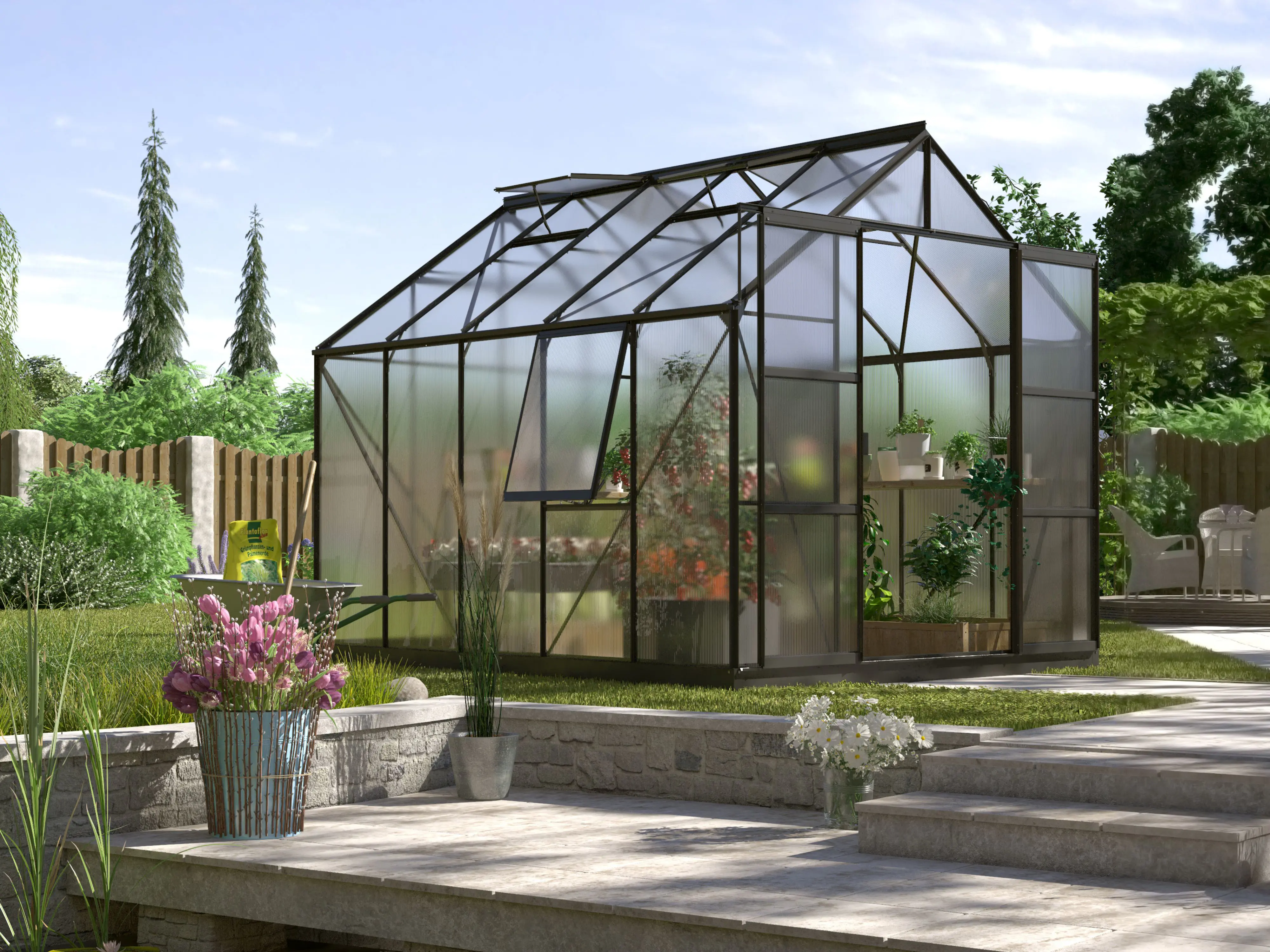 Geef je tuin een stijlvolle upgrade met de tuinkas Jupiter van Vitavia. Deze tuinkas combineert functionaliteit met elegantie. Perfect voor het kweken van groenten en kruiden in een beschermde omgeving. Dit luxueuze model heeft een dubbele schuifdeur, 2 tot 4 dakramen (afhankelijk van de grootte) en een extra zijvenster voor optimale ventilatie.