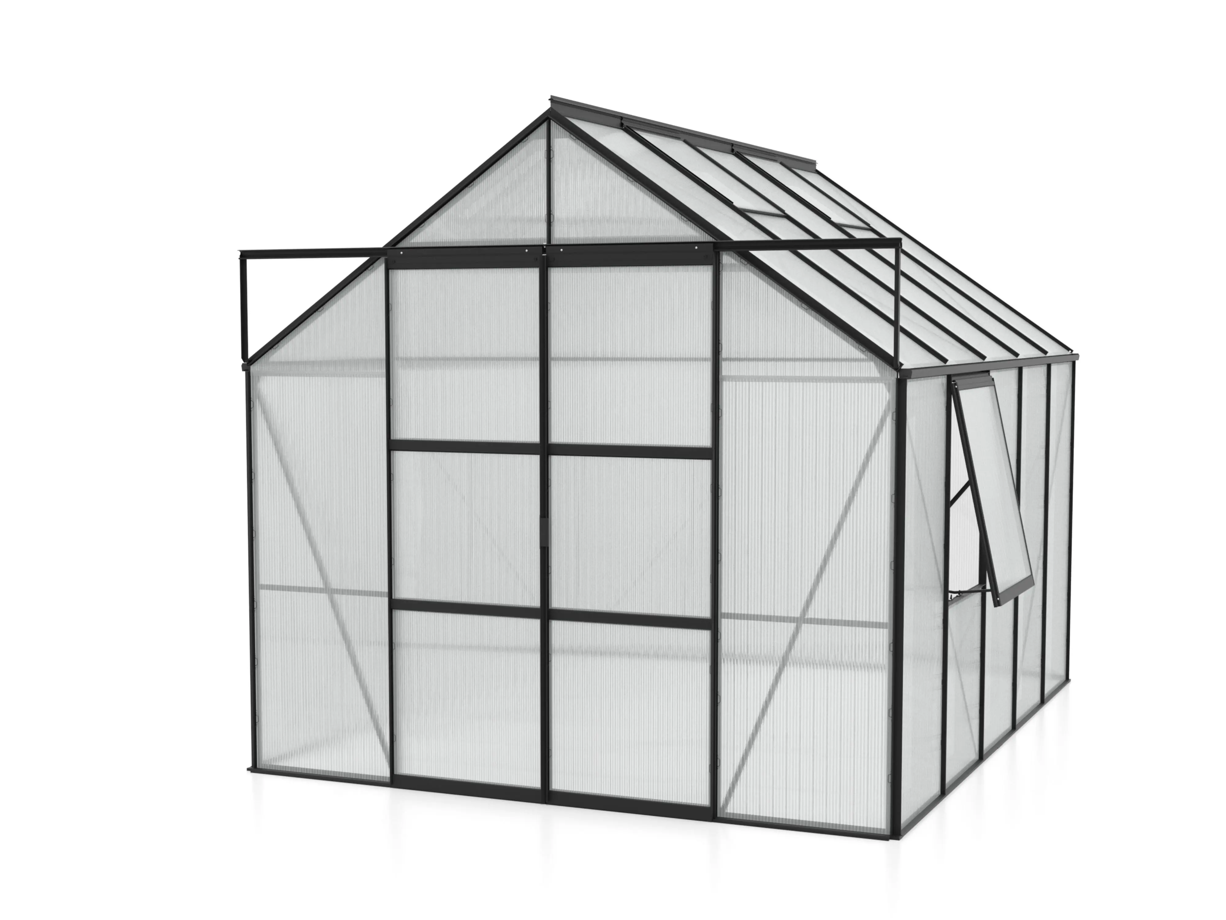 Met een royale hoogte van 248 cm en een breedte van 257 cm biedt de Jupiter meer dan genoeg ruimte. De dakrandhoogte van 154 cm zorgt voor extra stahoogte en werkgemak. Extra stevigheid wordt bereikt door hoekplaten en verstevigingen in de volledige kas, waardoor je ze zonder zorgen zwaarder kunt belasten.