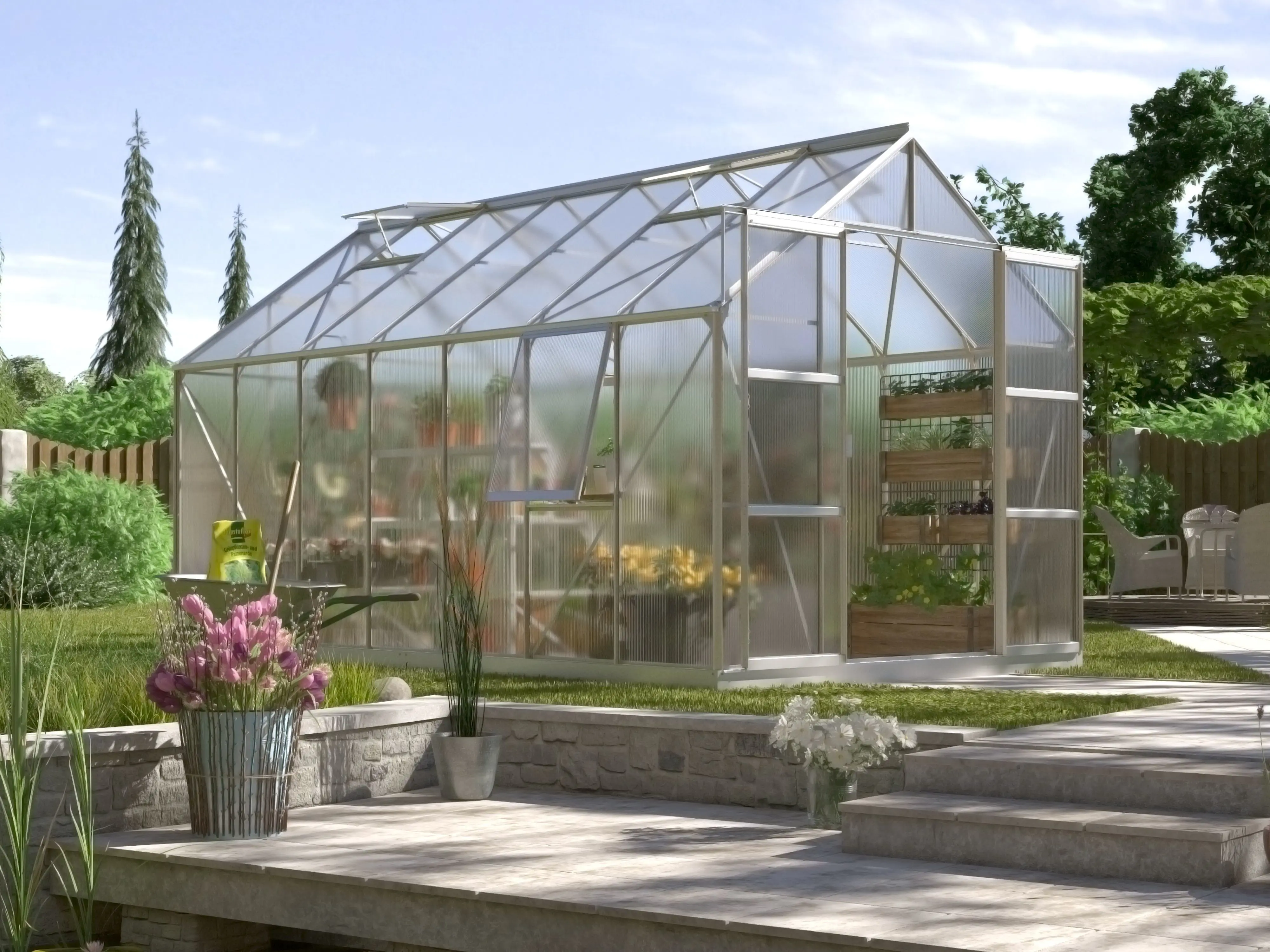 Geef je tuin een stijlvolle upgrade met de tuinkas Jupiter van Vitavia. Deze tuinkas combineert functionaliteit met elegantie. Perfect voor het kweken van groenten en kruiden in een beschermde omgeving. Dit luxueuze model heeft een dubbele schuifdeur, 2 tot 4 dakramen (afhankelijk van de grootte) en een extra zijvenster voor optimale ventilatie.