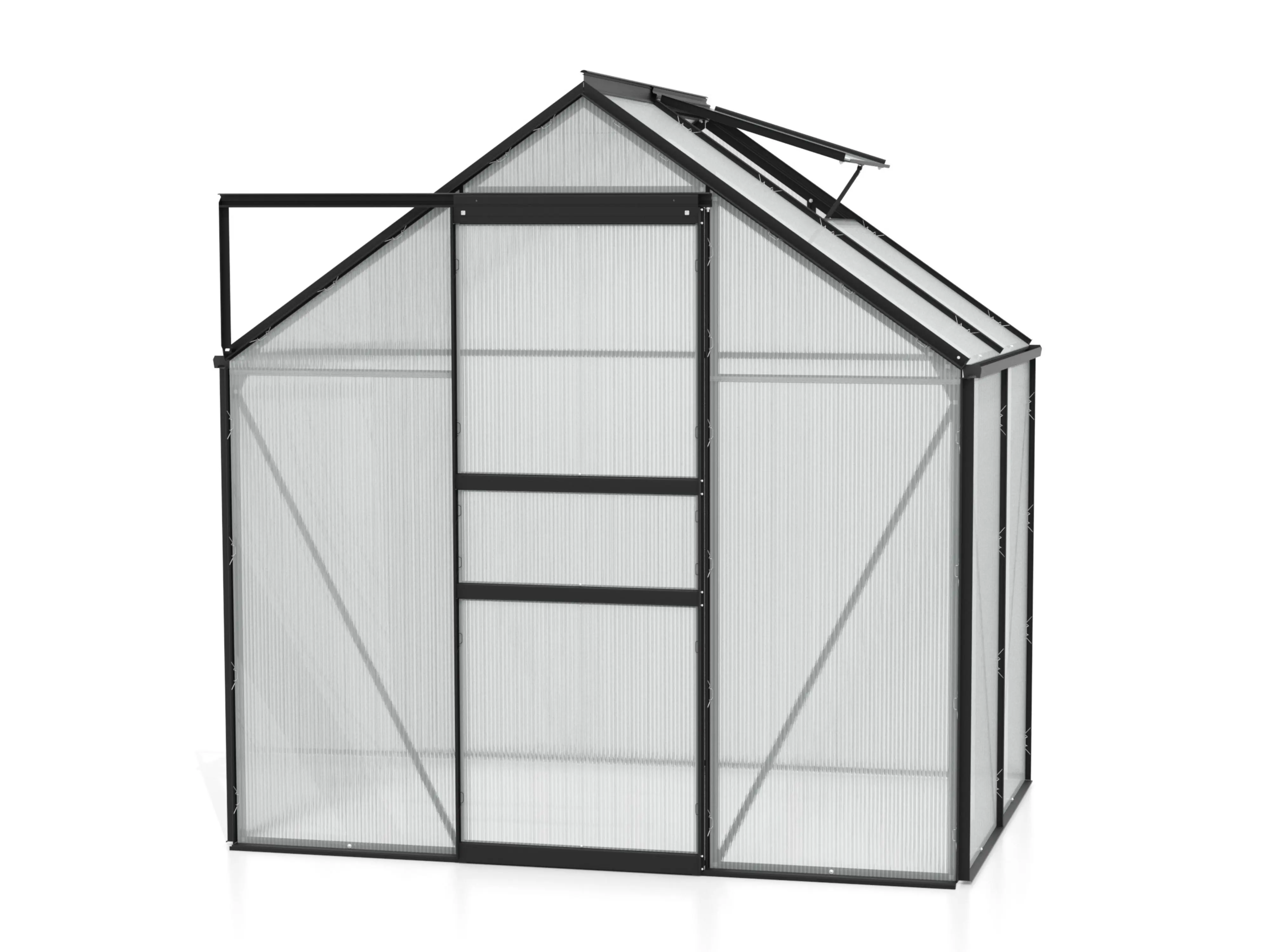 De serre wordt geleverd in duurzaam geanodiseerd aluminium zodat ze er jarenlang als nieuw uitziet. Met een handige schuifdeur die naar keuze links of rechts kan worden geplaatst, biedt de Venus flexibiliteit en gebruiksgemak. Afhankelijk van de grootte heeft de kas één of twee dakramen voor optimale ventilatie, en de structuur is verstevigd met daksteunen.