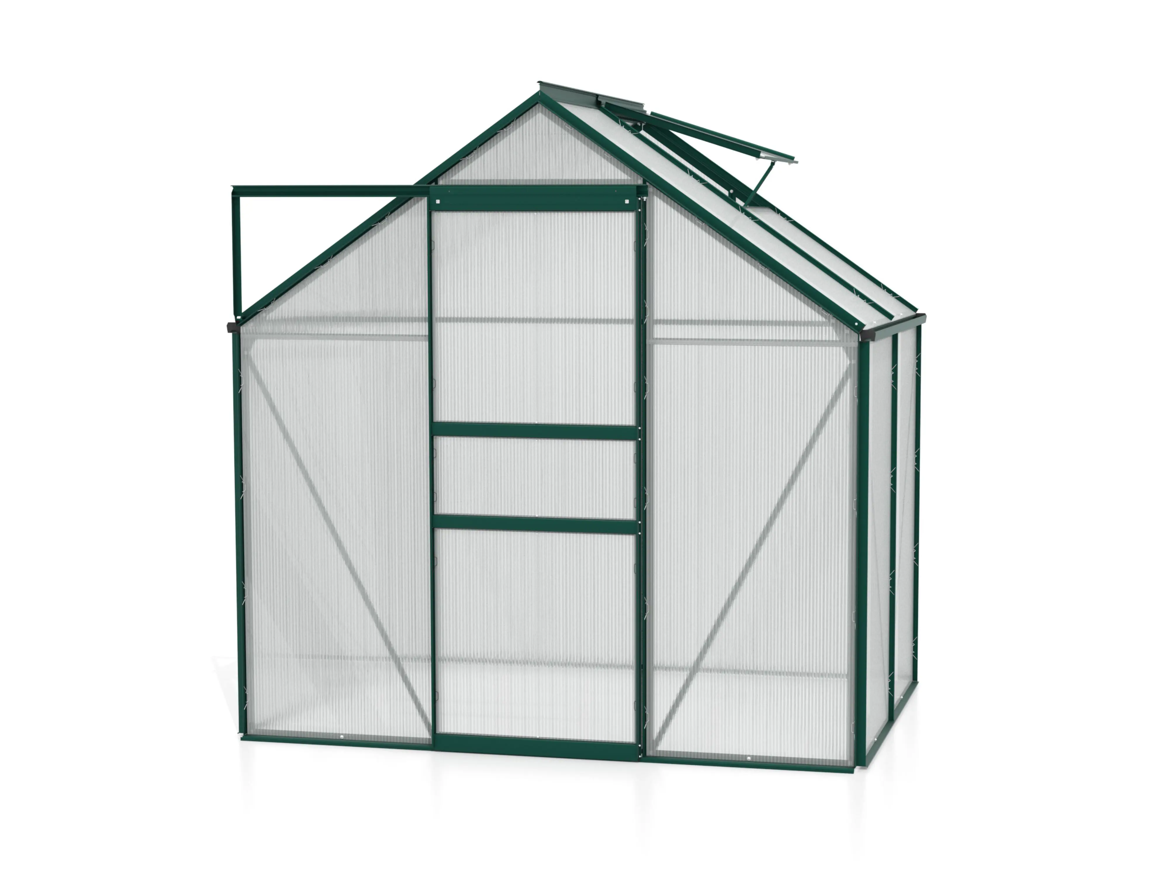 De serre wordt geleverd in duurzaam geanodiseerd aluminium zodat ze er jarenlang als nieuw uitziet. Met een handige schuifdeur die naar keuze links of rechts kan worden geplaatst, biedt de Venus flexibiliteit en gebruiksgemak. Afhankelijk van de grootte heeft de kas één of twee dakramen voor optimale ventilatie, en de structuur is verstevigd met daksteunen.