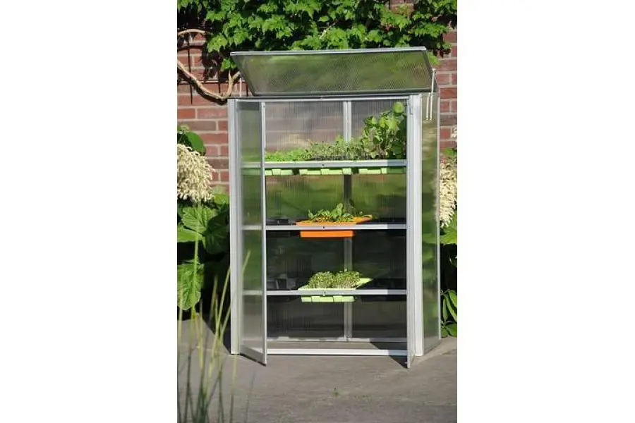 Het stevige aluminium frame kan eenvoudig worden gemonteerd met een schroevendraaier en de meegeleverde bouten en moeren. De afdichting van 4 mm dik dubbelwandig polycarbonaat wordt in het stevige aluminium frame gefixeerd voor een optimale bevestiging. Het polycarbonaat heeft een isolerende werking en zorgt voor diffuus groeilicht in de patiokas. Zo worden ideale omstandigheden voor het ontwikkelen van gewassen gecreëerd.