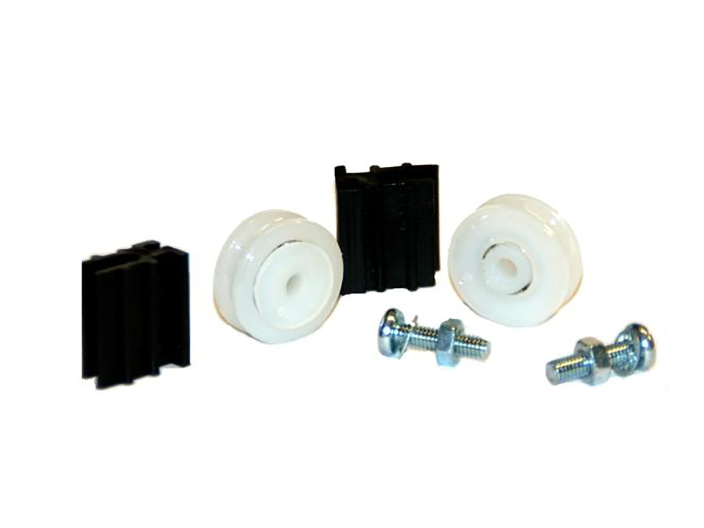Vervangwieltjes voor een schuifdeur van een serre of tuinkas. Deze duurzame wieltjes zijn uitgerust met kogelroulementen.