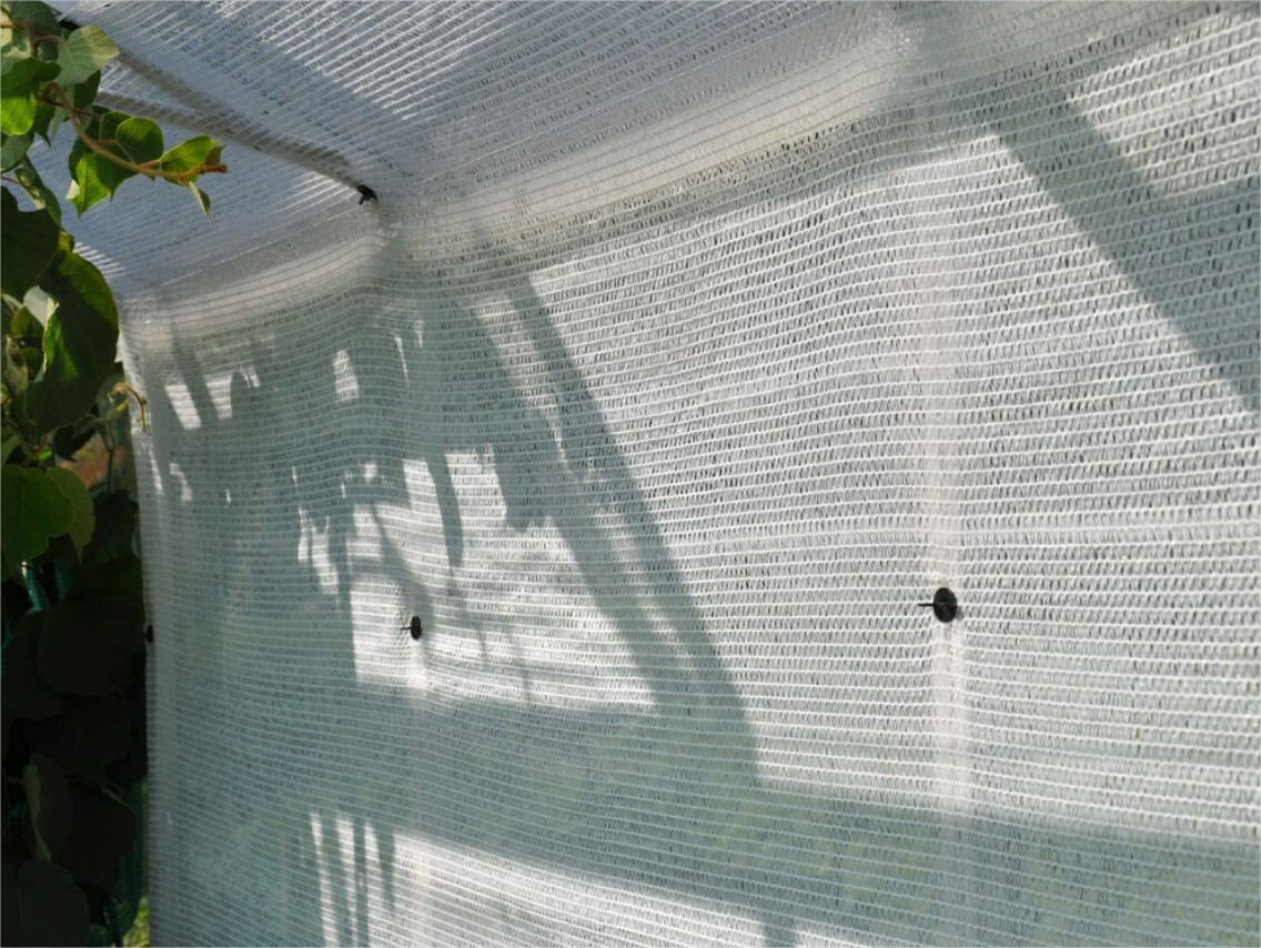 Dit schaduwdoek is een wit schermgaas dat slechts 15% van het licht tegenhoudt. 85% van het licht komt dus nog steeds de serre binnen. De graad van scherming die je moet gebruiken is afhankelijk van de oriëntatie van jouw serre en van de plantjes die je kweekt.