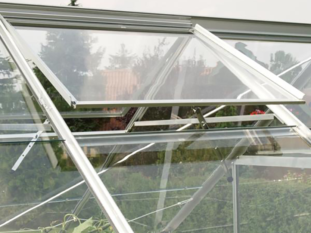 Voor een goede verluchting van jouw tuinserre zijn dakramen ideaal. Dit aluminium dakraam wordt geleverd met manuele raamopener maar zonder glas.