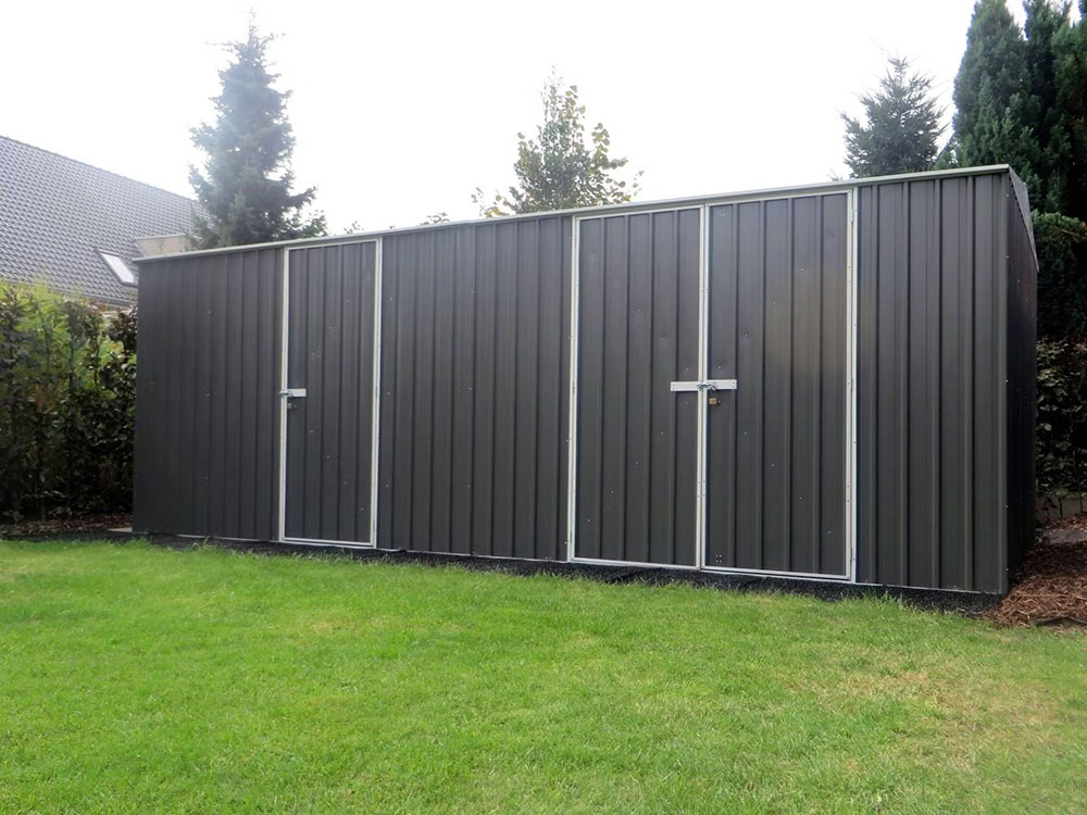 De tuinberging is voorzien van een dubbele en een enkele deur, waardoor je gemakkelijk toegang hebt tot al je spullen. Of je nu een fiets, brommer, kruiwagen of zwaardere tuinmachine hebt, je kunt moeiteloos naar binnen. Bovendien is de ruimte extra hoog, waardoor deze ook geschikt is voor grotere personen en ideaal voor de echte klusser die een werkplaats wil combineren met een opslagruimte.