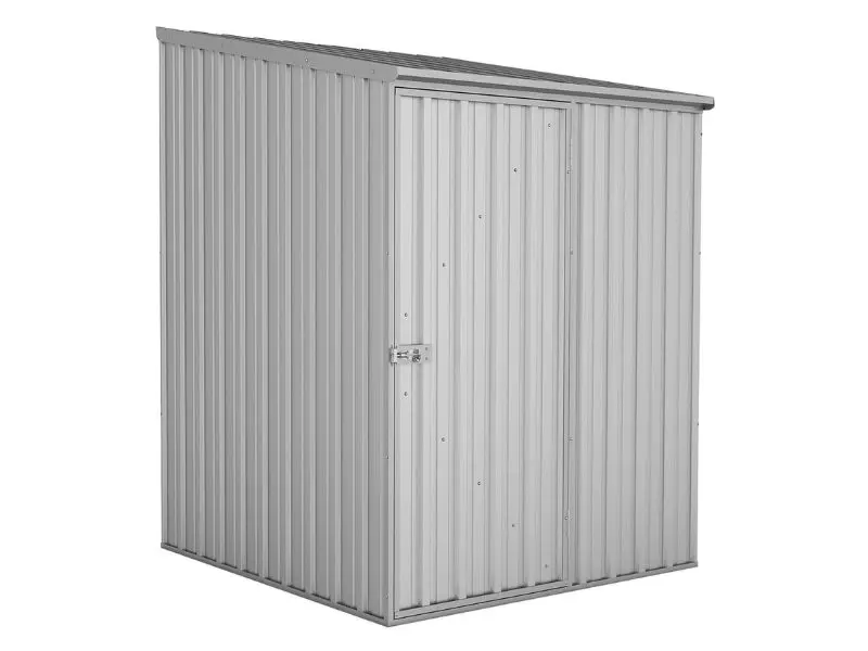 Dankzij het gepatenteerde clipsysteem verloopt de montage eenvoudig en snel, zonder dat er veel schroeven nodig zijn. Het dak met enkele helling zorgt voor een moderne uitstraling en vergemakkelijkt tegelijkertijd de afvoer van regenwater, waardoor de inhoud optimaal wordt beschermd.