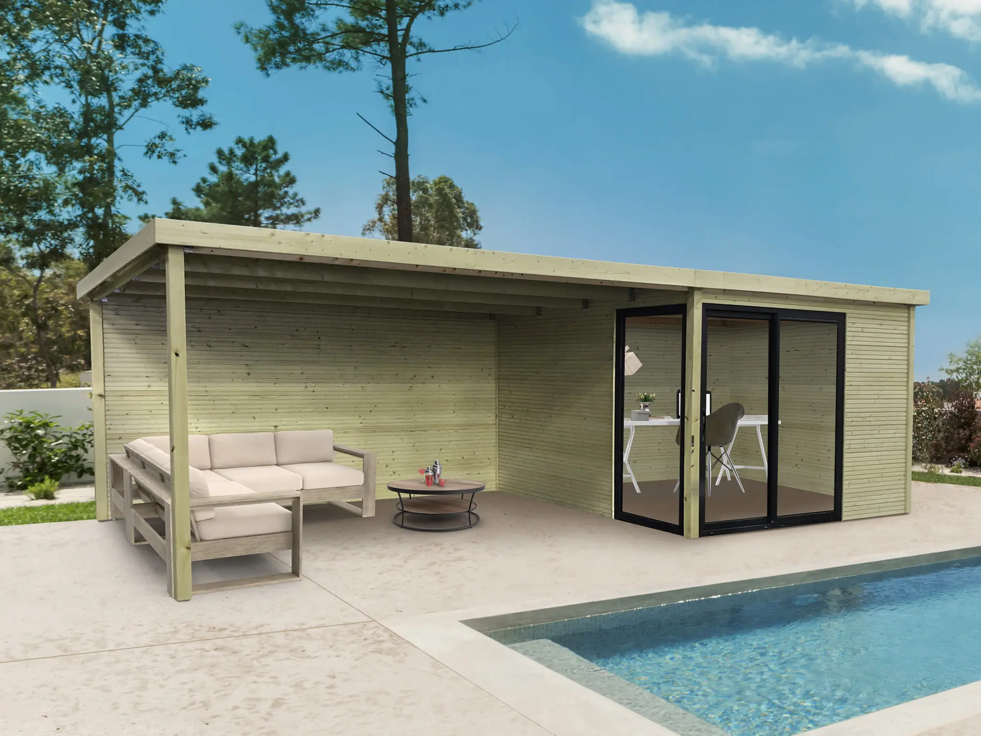 Het tuinhuis Sagres is een modern tuinhuis dat zorgt voor de perfecte combinatie van functionaliteit en stijl. Het tuinhuis is gemaakt van gecertificeerd Noord-Europees vurenhout, wat zorgt voor een duurzaam en stevig bouwwerk.