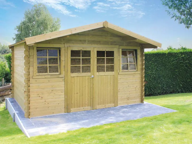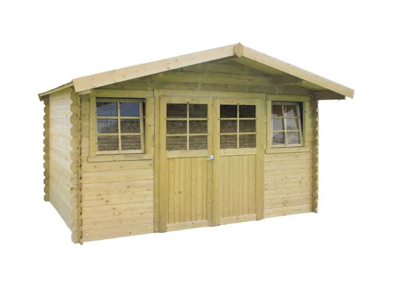 Het traditionele blokhut bouwsysteem waarbij houten profielen met tand en groef op elkaar worden geplaatst. Voorzien van een dak met houten planken van 16mm en van een zwarte roofing. Transparant gehard glas. Slot met kinderbeveiliging. Ventilatieset.