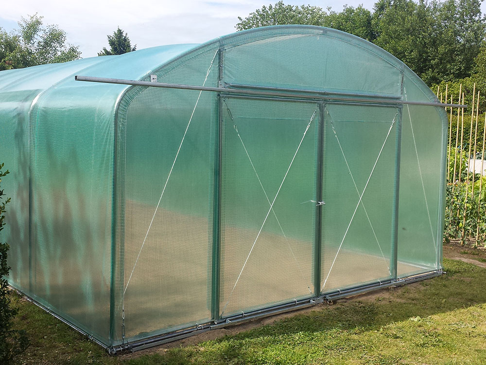 Deze variant van de Tunnelserre Elegant heeft de afmetingen: 420 x 450 x 245 cm.