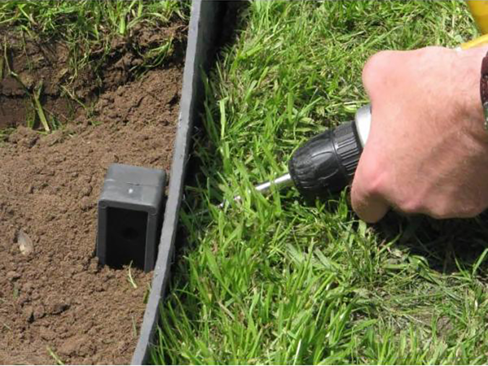 - Klop de ecopic paaltjes om de 50 cm verticaal in de grond.