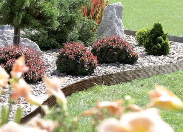Een sterke, stevige en flexibele tuinboord die bestand is tegen alle weersomstandigheden. De structuur van deze afranding lijkt op gevlochten riet en het geheel oogt zeer elegant, deze kunststoffen boord heeft geen onderhoud nodig.