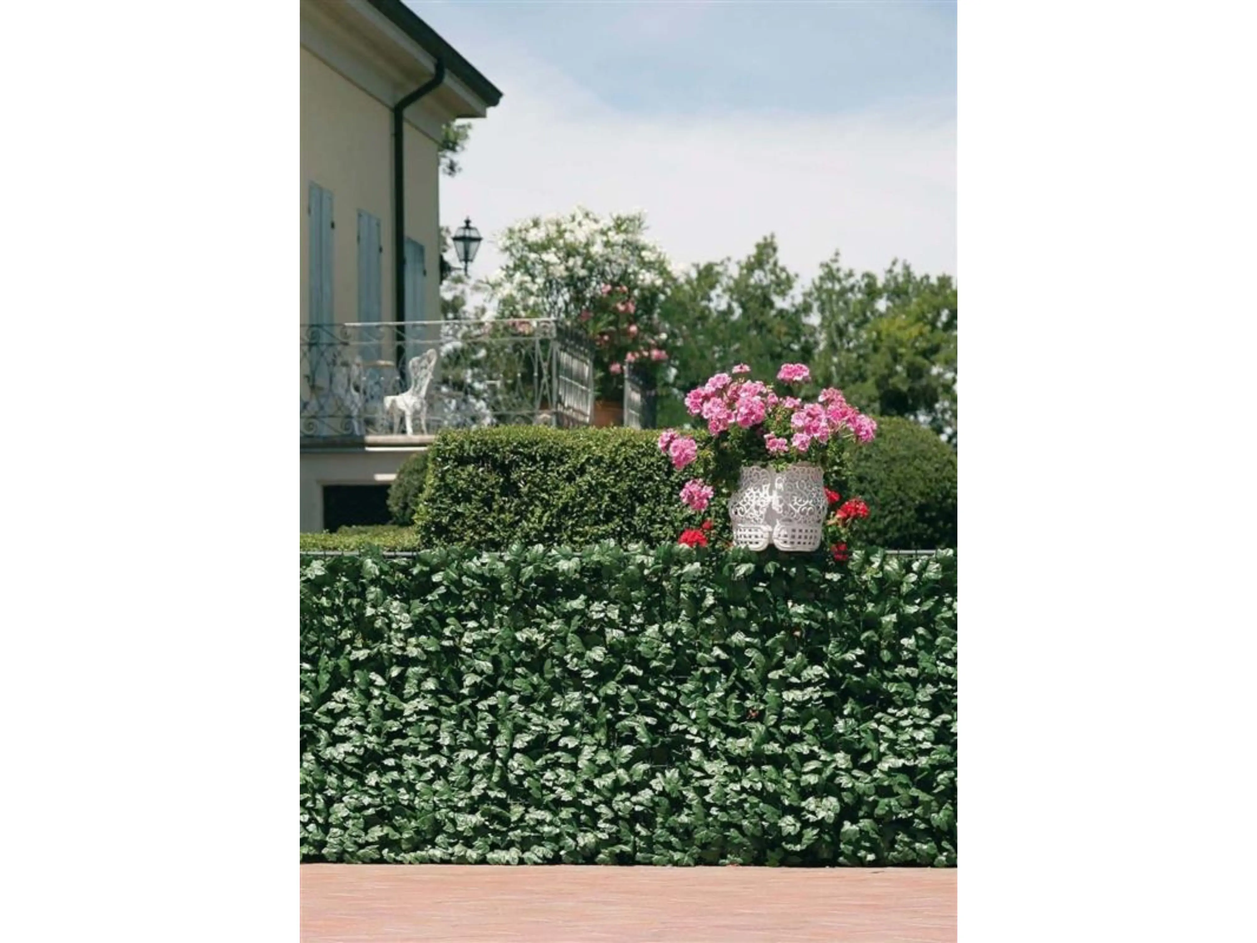 Dit decoratieve scherm bestaat uit een kunststof net in combinatie met kunststof klimopbladeren. Het groene scherm kan gebruikt worden tegen een tuinmuur, aan een ballustrade of om een bepaalde zone van de tuin af te schermen. Eenmaal het groene scherm bevestigd is, ziet het er uit zoals een met klimop begroeide wand.