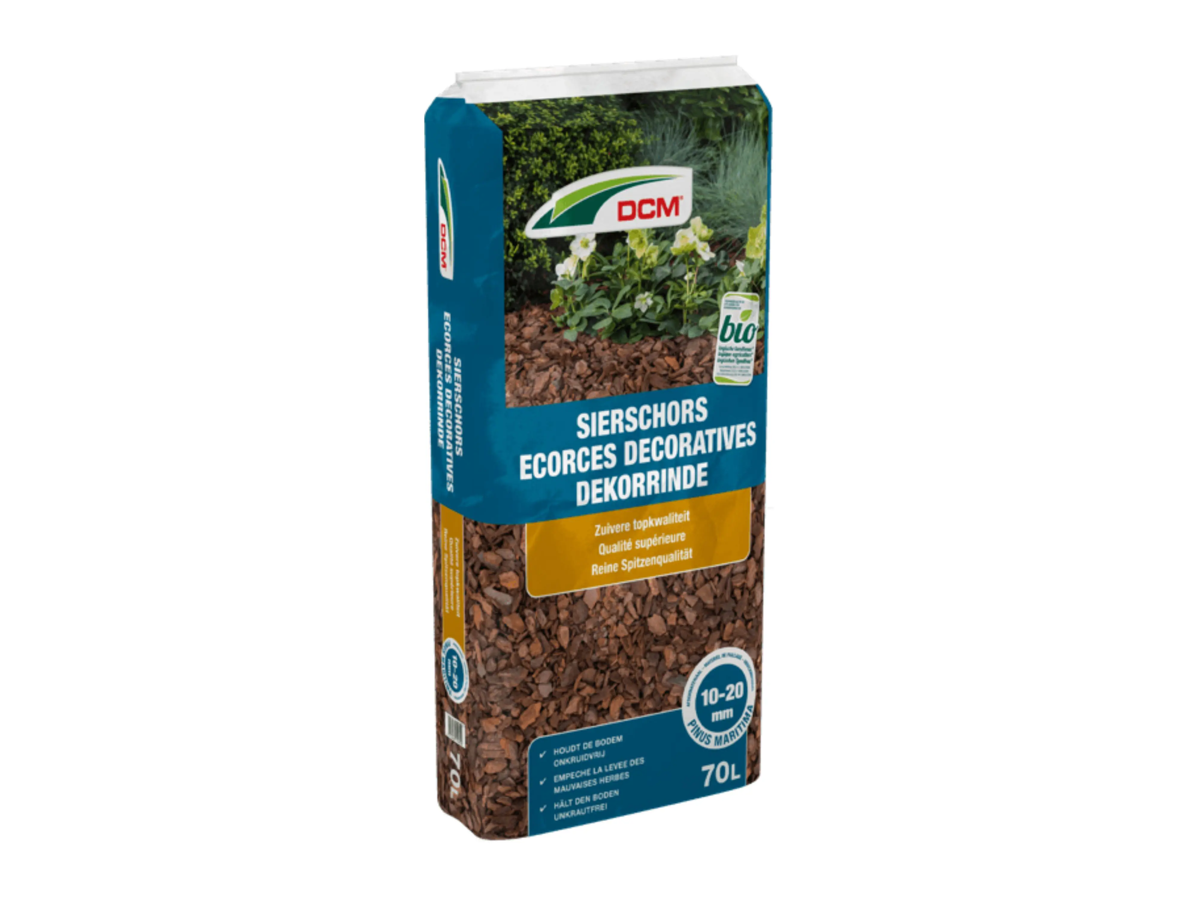 DCM Sierschors is een bruinrode schors die geschikt is als als decoratieve en efficiënte bodembedekker. Een laagje voorkomt onkruidgroei en beschermt de bodem tegen sterke temperatuurschommelingen zowel in de zomer als in de winter.