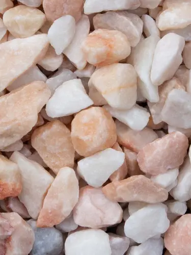 Rosa Milano split: een unieke siersplit met luxe uitstraling. Uniek vanwege de zachte pastelkleuren die die split rijk is: van sneeuwwit tot zalmroze en zachtoranje tinten. Past prachtig in zowel moderne tuinen (denk aan de combinatie met grijs) als bijvoorbeeld mediterrane, warm ingerichte tuinen.