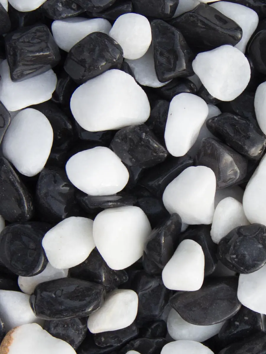 Panda grind is een prachtige siergrind, met zowel witte als donkergrijze steentjes waardoor een mooi contrast ontstaat. De uitstraling is dan ook modern, al is het grind door de ronde vorm toch niet té scherp aanwezig.