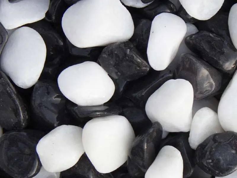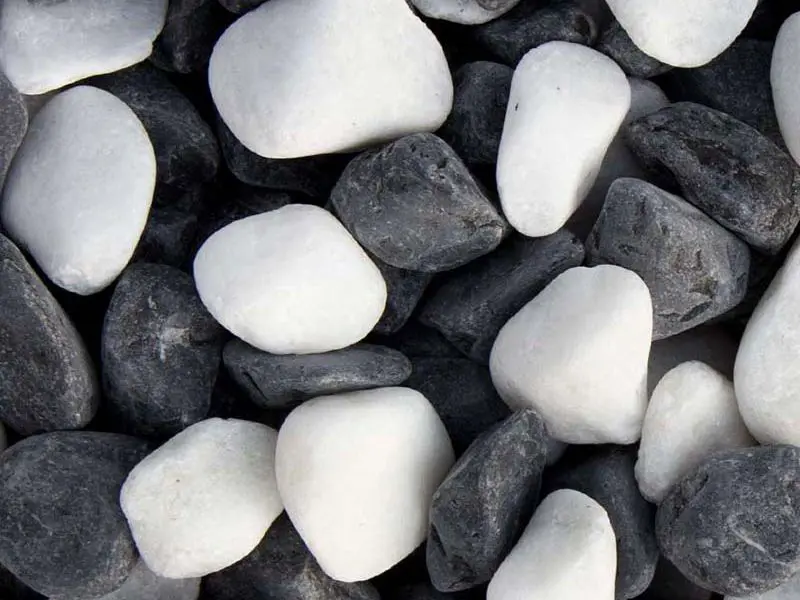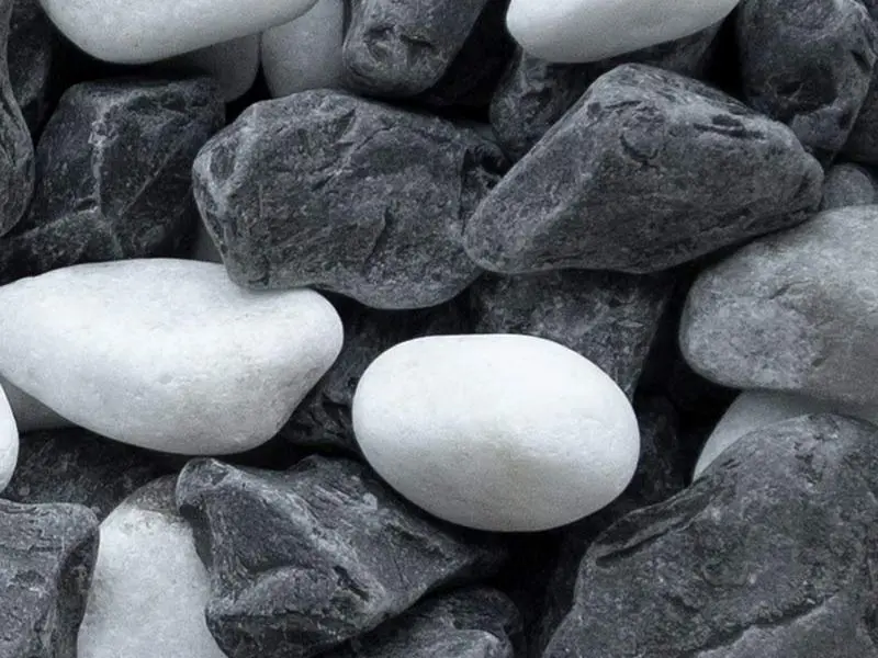 Panda grind is een prachtige siergrind, met zowel witte als donkergrijze steentjes waardoor een mooi contrast ontstaat. De uitstraling is dan ook modern, al is het grind door de ronde vorm toch niet té scherp aanwezig.
