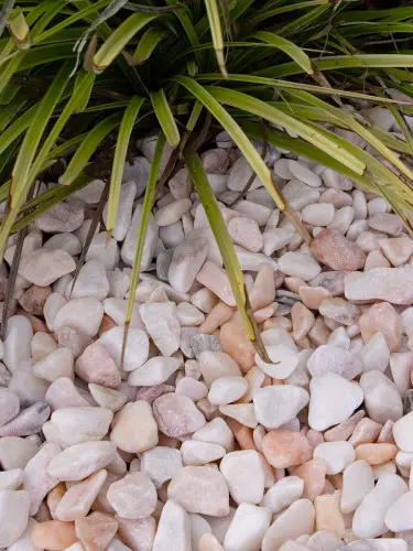 Rosa Milano grind: een unieke siergrind met luxe uitstraling. Uniek vanwege de zachte pastelkleuren die het grind rijk is: van sneeuwwit tot zalmroze en zachtoranje tinten. Past prachtig in zowel moderne tuinen (denk aan de combinatie met grijs) als bijvoorbeeld mediterrane, warm ingerichte tuinen.