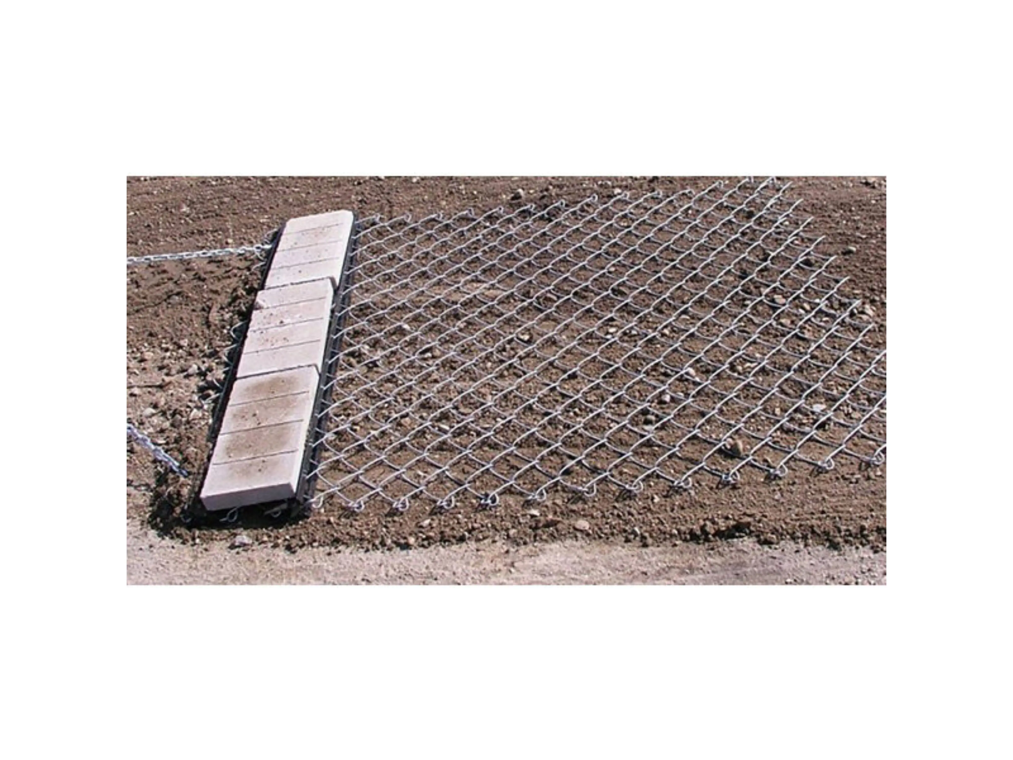 Nivelleringsnet van gegalvaniseerd metaal. Maakt egalisatie mogelijk van losse grond of grind oprit. Het sleepnet kan gemakkelijk achter elke zitmaaier, ATV/quad of kleine tractor bevestigd worden.