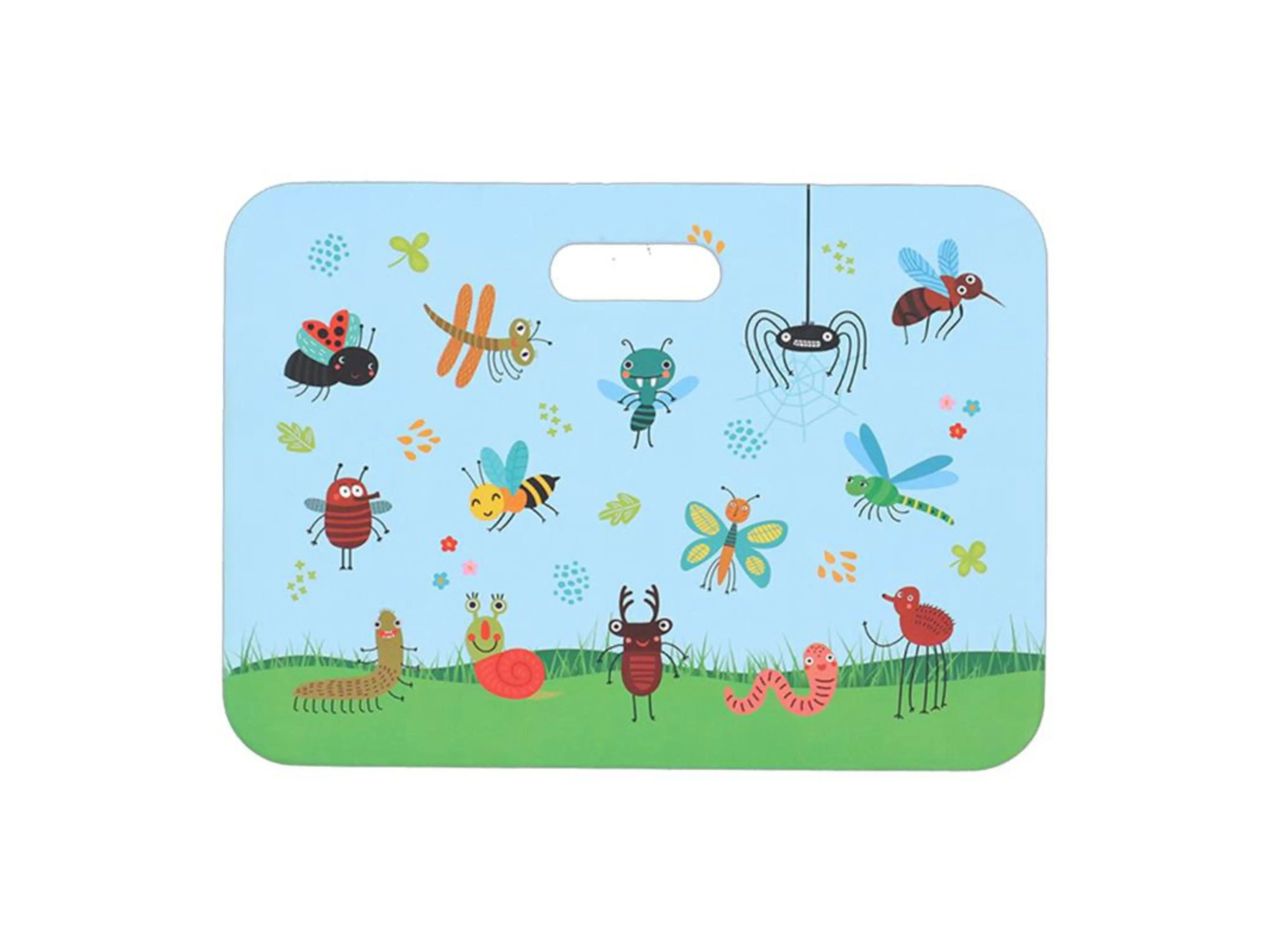 Wat dit knielkussen extra bijzonder maakt? De vrolijke insectenprint met kleurrijke bijtjes, vlinders en lieveheersbeestjes spreekt tot de verbeelding van elk kind en brengt de natuur nog dichterbij.