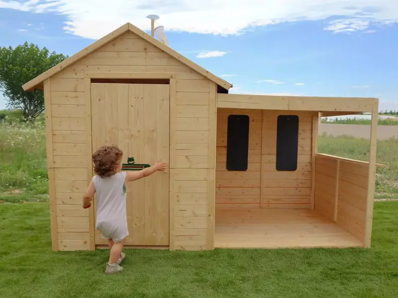 Het houten Sarah-speelhuisje biedt een ware fantasiewereld voor kinderen van 3 tot 12 jaar. Er is plaats voor maximaal 4 kinderen tegelijk. Dankzij de ingebouwde overkapping kunnen de kinderen ook bij regen buiten blijven spelen, terwijl ze toch beschut zijn.