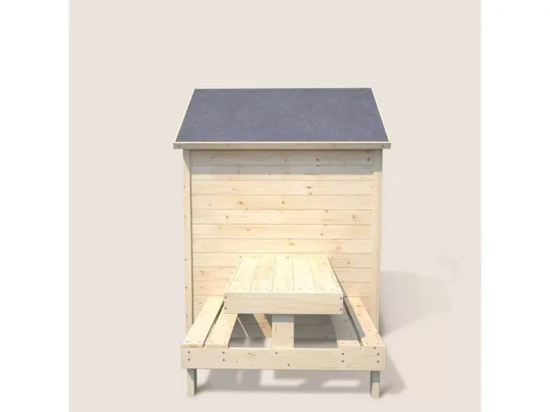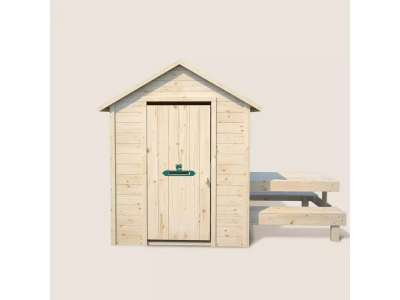 Dit houten speelhuisje is ontworpen om een unieke speelervaring te bieden. Kinderen kunnen genieten van zowel de binnenruimte als de buitenruimte met de picknicktafel, wat tal van speelmogelijkheden biedt. De dichte deur is voorzien van magneetsluitingen om te voorkomen dat deze dichtslaat, waardoor de veiligheid van de kinderen tijdens het spelen gewaarborgd is. Het raam met twee vleugels (57 x 45 cm) met plexiglas zorgt bovendien voor lichtinval en bescherming tegen tocht.