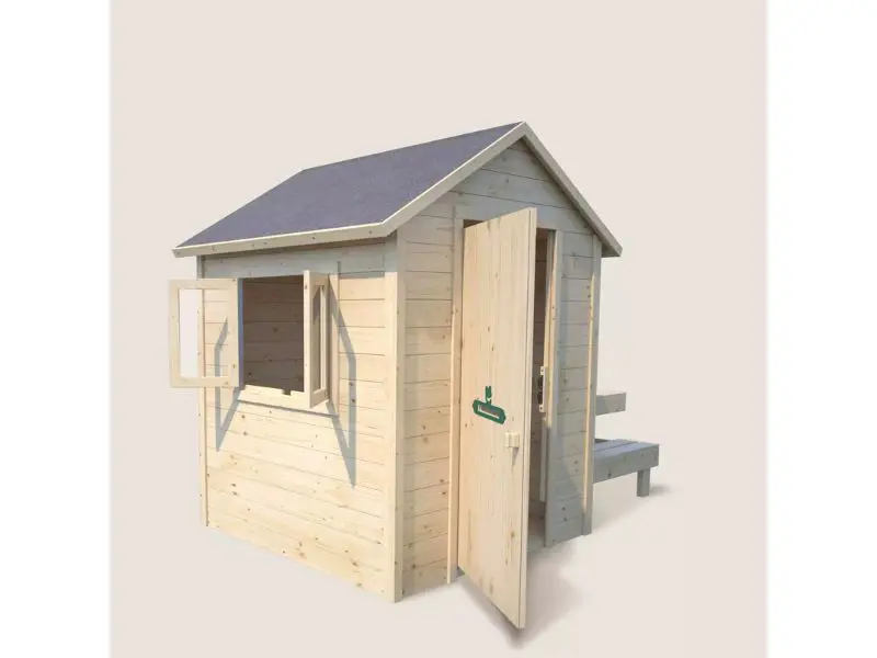 Met haar zadeldak en frame van natuurlijk hout heeft het Tiana-speelhuisje een eenvoudig en authentiek ontwerp dat perfect in elke tuin past. Het onbehandelde hout maakt het gemakkelijk om het huisje aan te passen: schilder het of breng een vernislaag aan om het af te stemmen op uw voorkeuren en de stijl van uw tuin.