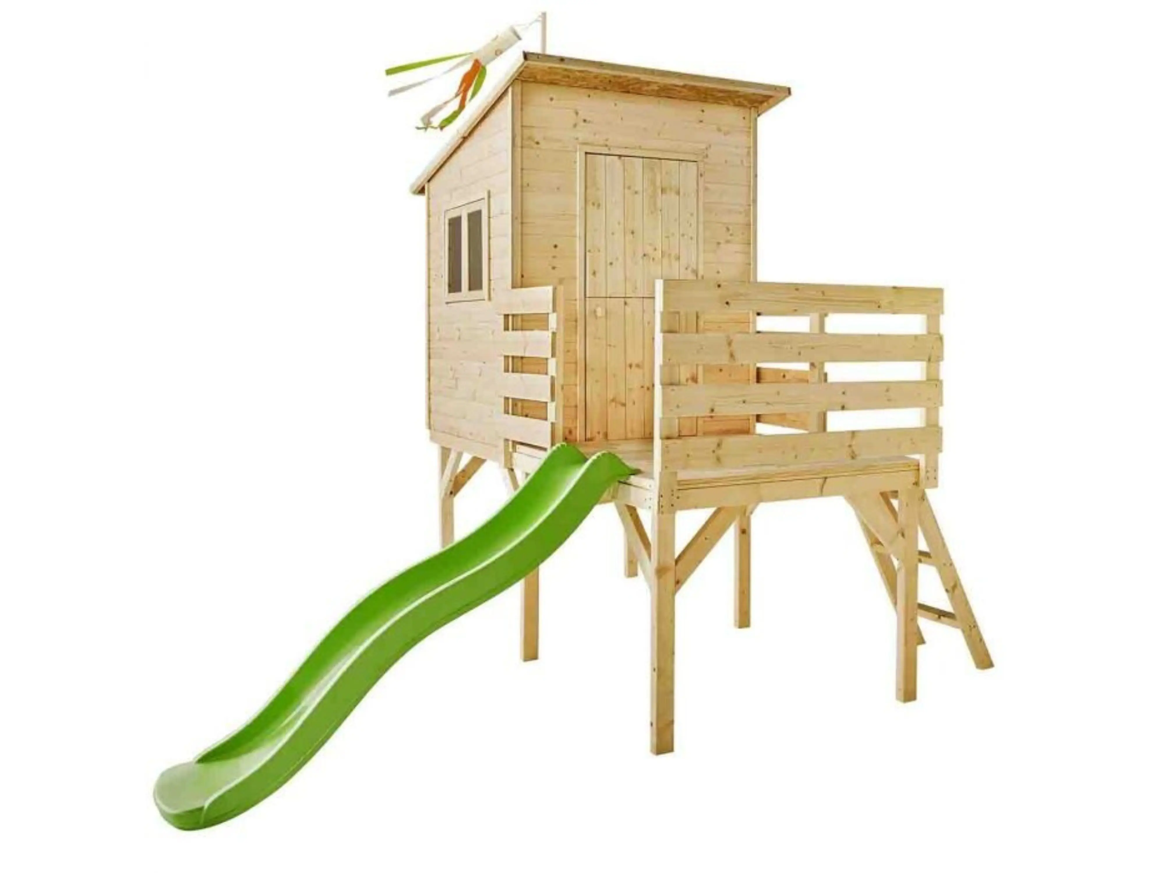 • verhoogd speelhuis met glijbaan