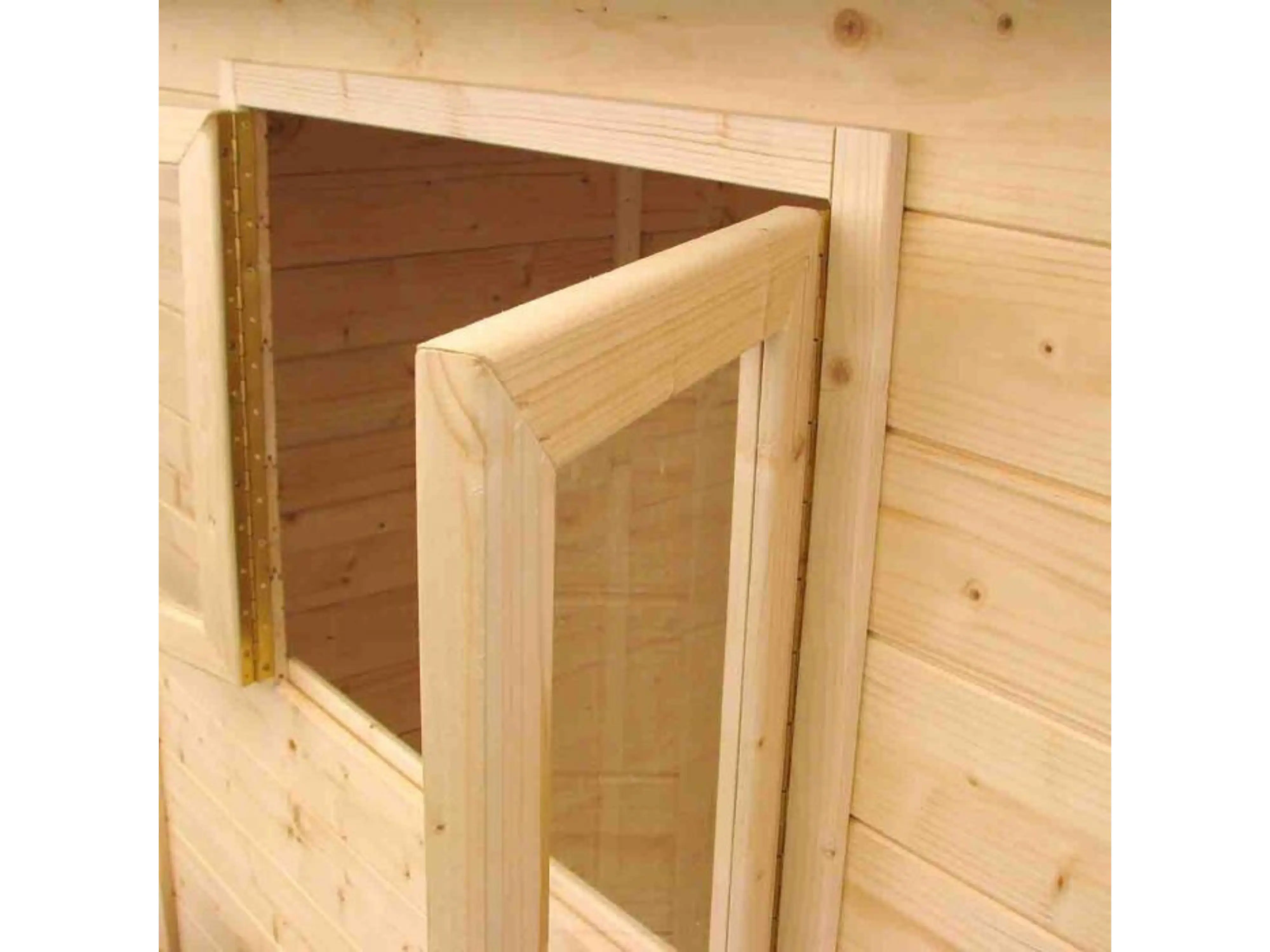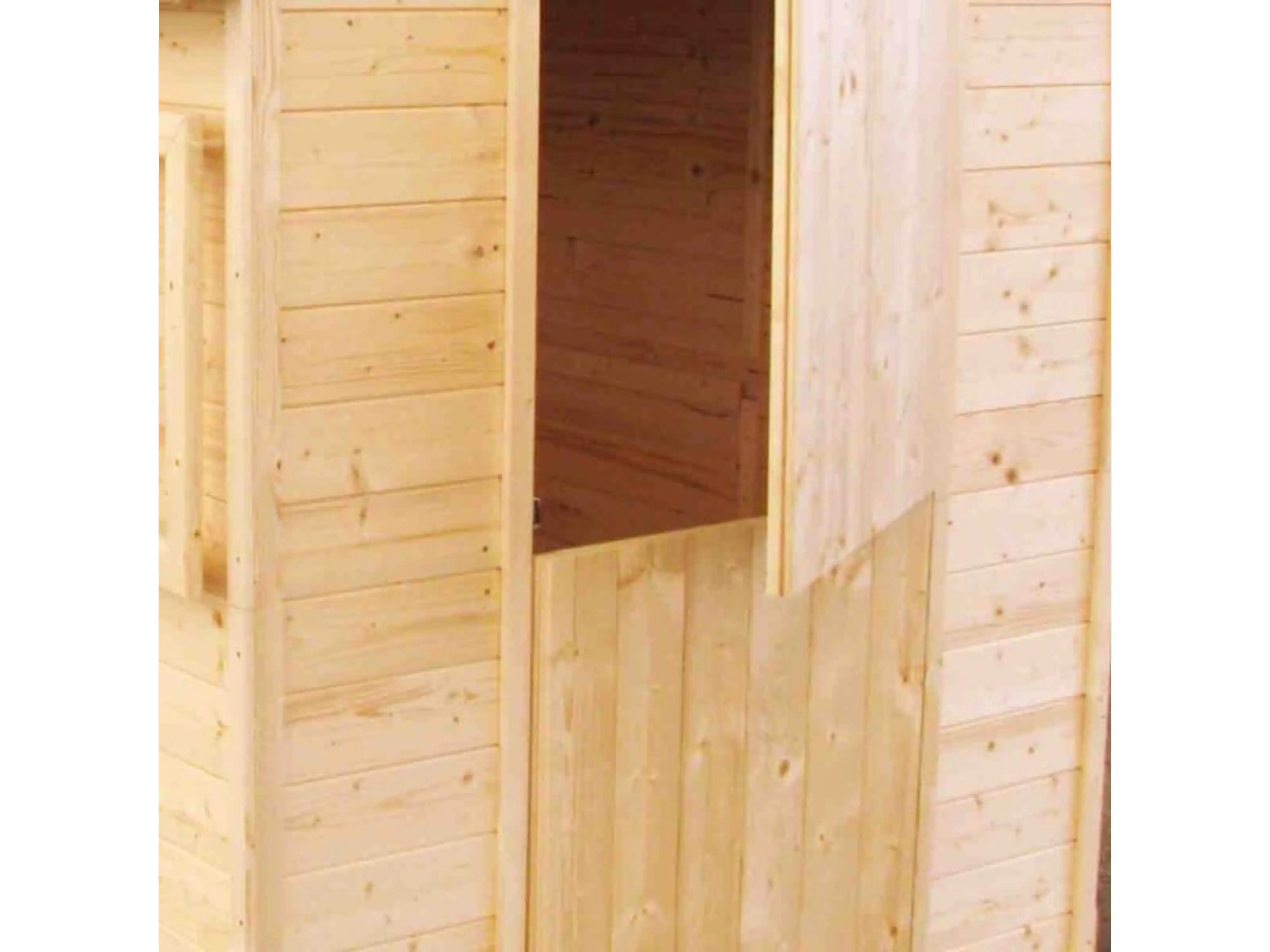 Het speelhuisje heeft een plat hellend dak, een raam met plexiglas en een magnetische dubbele deur. Het authentieke en eenvoudige ontwerp past perfect binnen elke tuin en zorgt voor een mooie toevoeging aan de speelruimte van je kinderen.