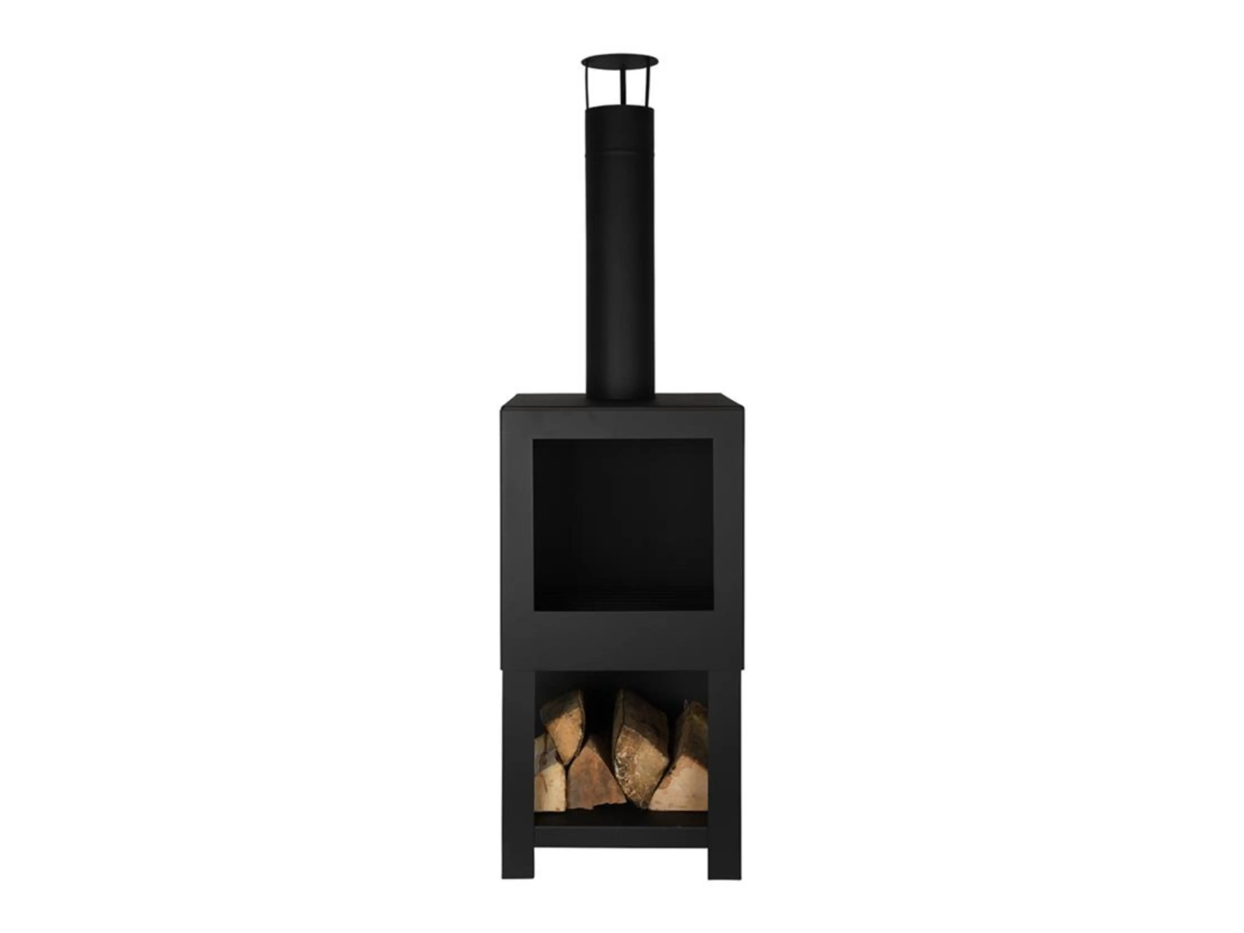 Dankzij de ingebouwde houtopslag onder de kachel heb je altijd droog hout binnen handbereik - praktisch en decoratief. De kachel is vervaardigd uit duurzaam metaal dat bestand is tegen hoge temperaturen en ontworpen om jarenlang mee te gaan.