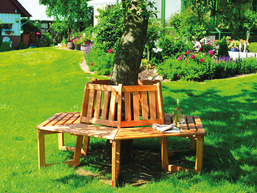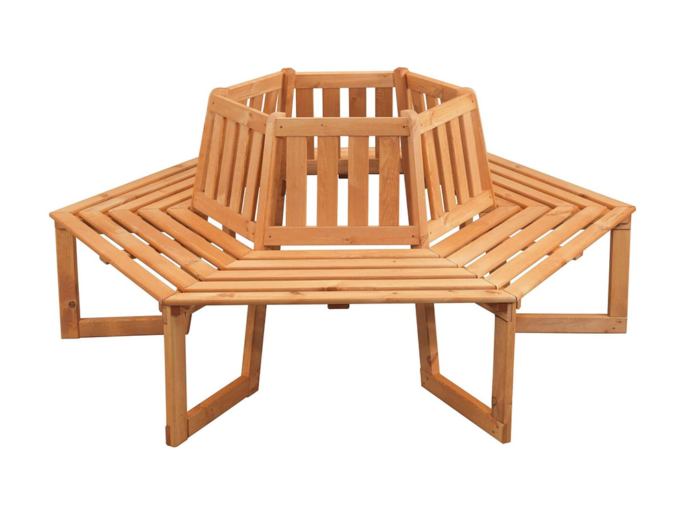 Het hout is geïmpregneerd en beschermd tegen weer en wind, afgewerkt met een honingbruine kleur. Met deze bank vorm je een mooie cirkelvormige zitplaats rond een boom in de tuin!