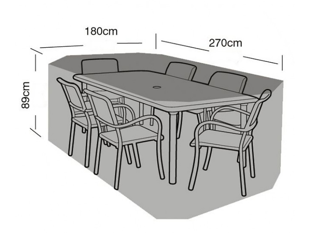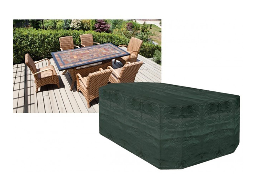 Beschermhoes tuinmeubelen voor een tuinset bestaande uit 1 rechthoekige tafel en 6 stoelen. De hoes zorgt er voor dat jouw mooi meubilair jaar na jaar in onberispelijke staat blijft.