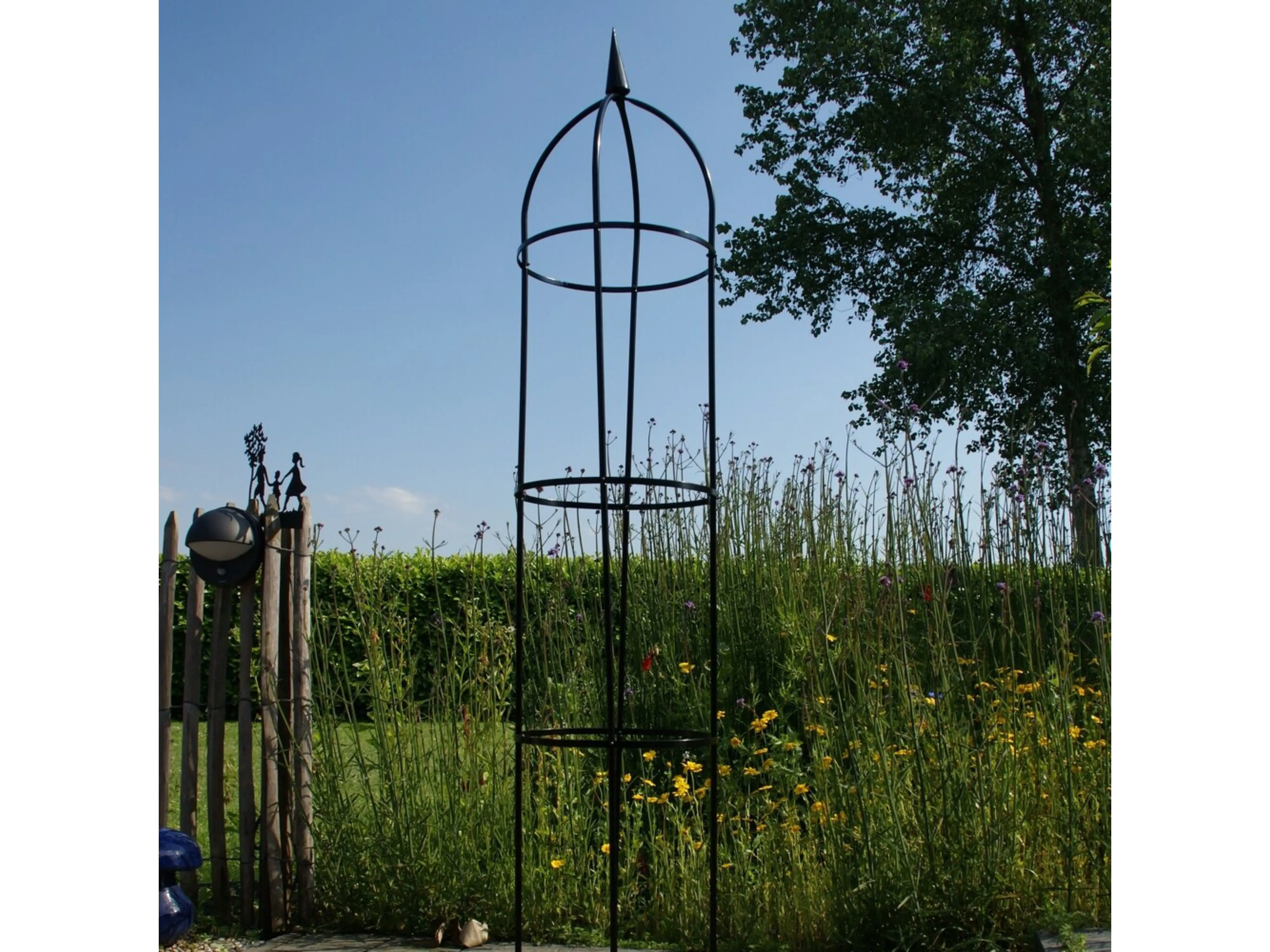 Geef je tuin een stijlvolle en praktische upgrade met deze metalen obelisk klimhulp. Ideaal voor klimrozen, clematis, jasmijn, passiebloem en andere klimplanten. Dankzij de stevige constructie biedt de obelisk volop steun en stabiliteit, zodat jouw planten moeiteloos omhoog groeien en prachtig tot bloei komen.