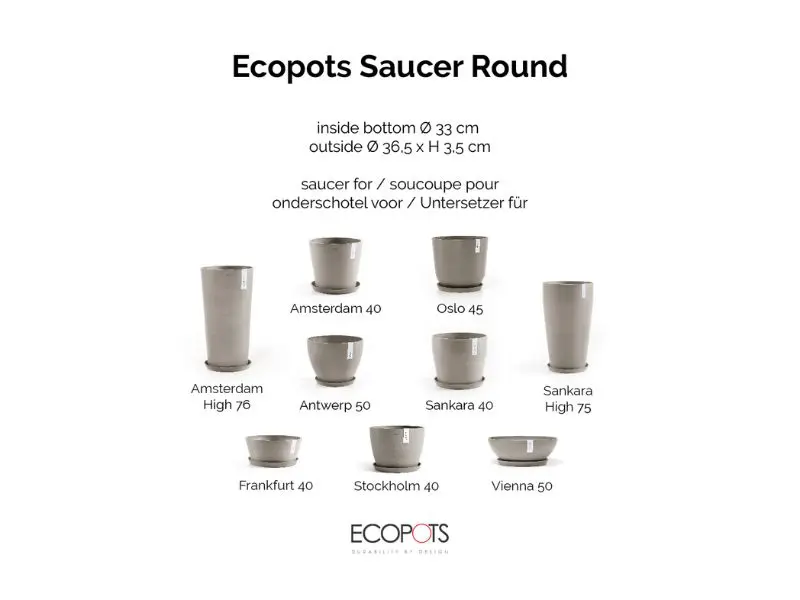 Ecopots staat voor tijdloos Scandinavisch design, gecombineerd met duurzaamheid en gebruiksgemak. Deze ronde schaal vormt de perfecte aanvulling op je Ecopots en houdt je interieur of tuin netjes en stijlvol.