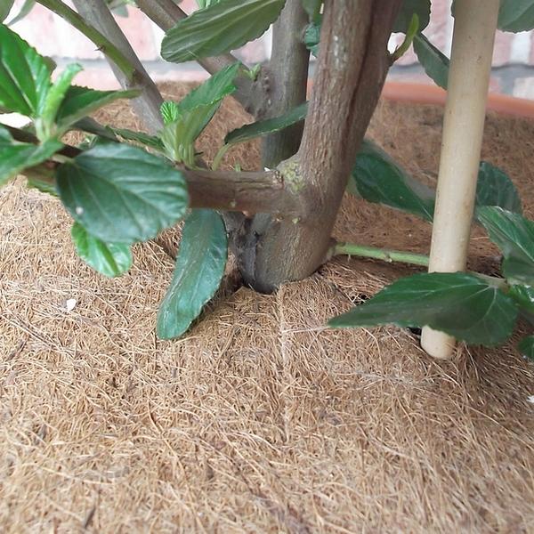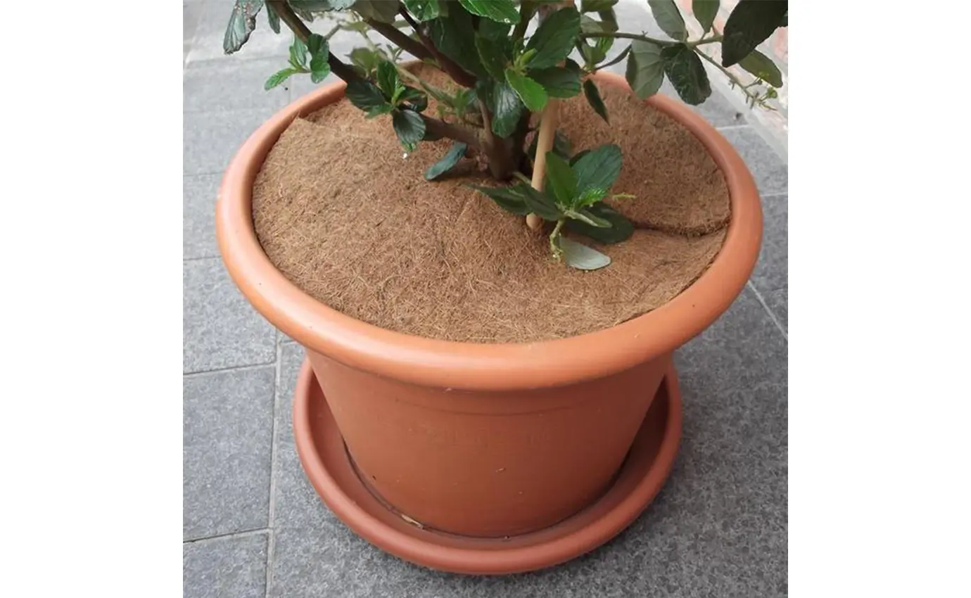 Kokos is een natuurproduct dat ook de groei van onkruid in potten voorkomt. Het is eveneens doeltreffend tegen scharrelende vogels en katten die putjes graven in bloempotten.