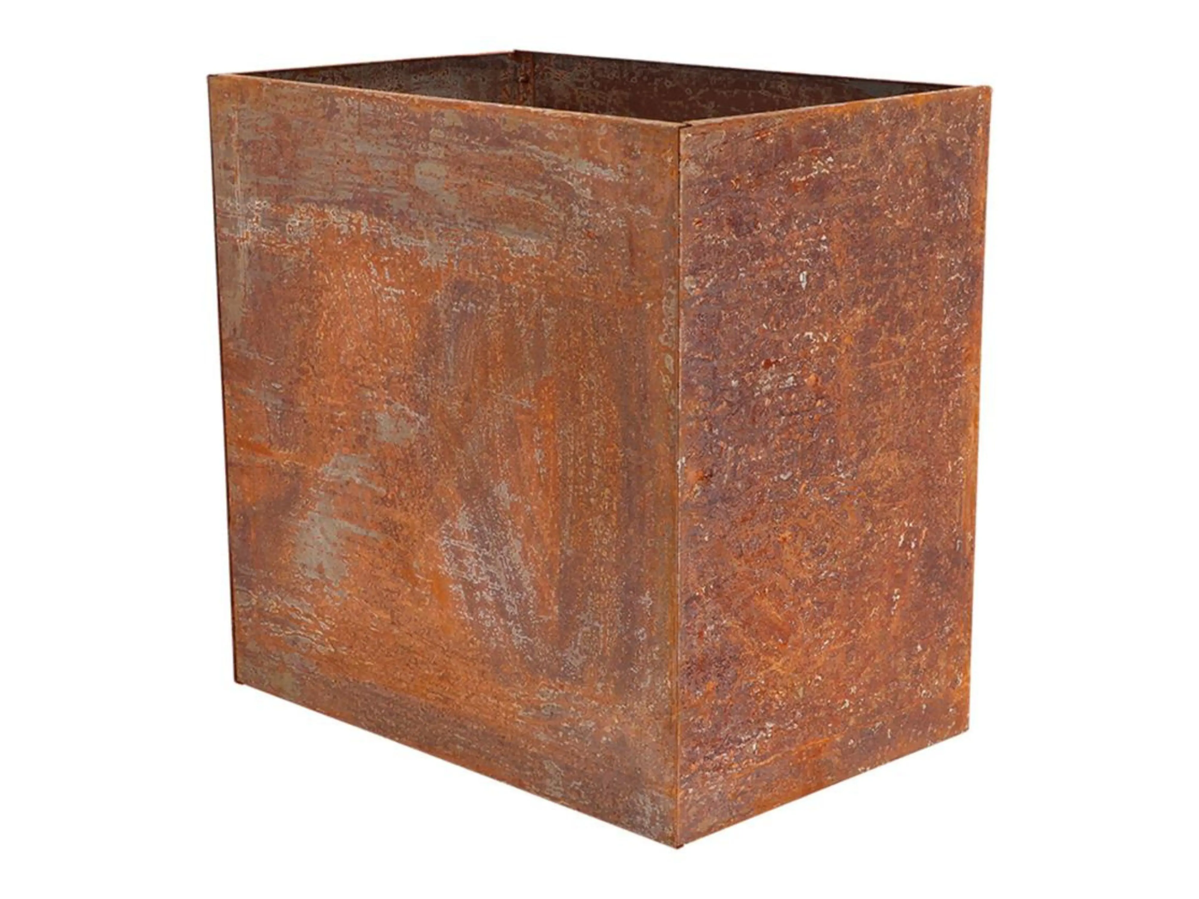 De plantenbak biedt veel ruimte aan bloemen, kruiden en planten. Na verloop van tijd zal het weer en de invloed van de elementen de plantenbak verder doen roesten, wat resulteert in een prachtig verweerde eindlaag. Onderaan zijn er openingen aangebracht zodat overtollig water altijd moeiteloos uit de plantenbak weg kan wegstromen.