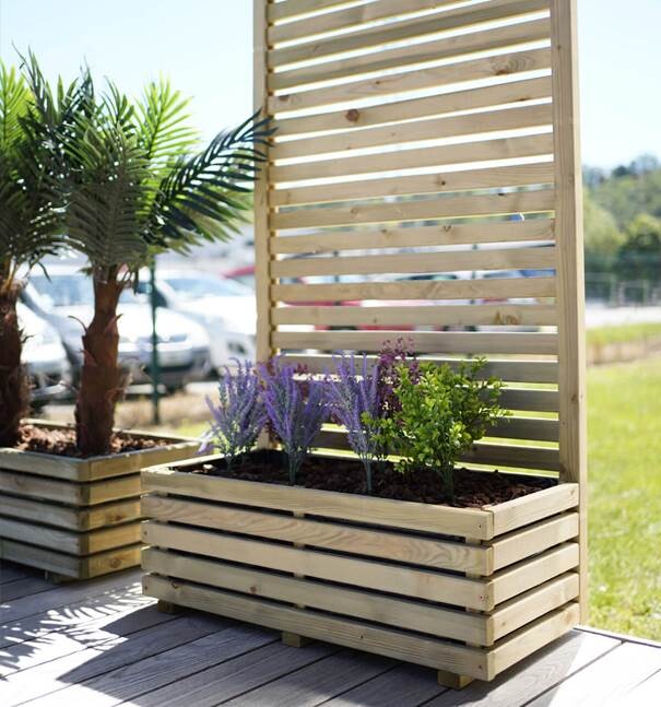 Groenvoorziening en privacy in één klap. Deze bak is geschikt voor planten met een maximale groeihoogte van 70 cm.