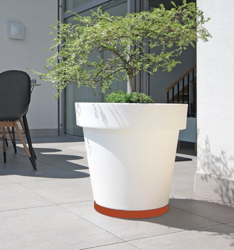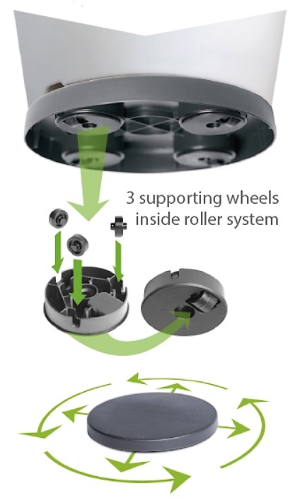 De vier wielen zijn elk afzonderlijke 360° draaibaar zodat het platform in elke richting kan worden verplaatst. In elk wiel zit een ingenieus rollersysteem gebouwd van 3 extra ondersteunende rollers voor optimale zwenkbaarheid. Door de vlakke bovenkant sluit het platform perfect aan bij jouw terracotta bloempot en lijkt het net één geheel.