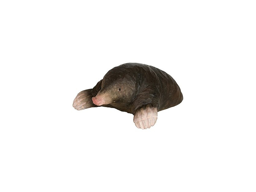 Ambachtelijk vormgegeven houten Europese mol (Talpa europaea). Dit beeld van een nieuwsgierige mol is beschilderd met milieuvriendelijke verf.