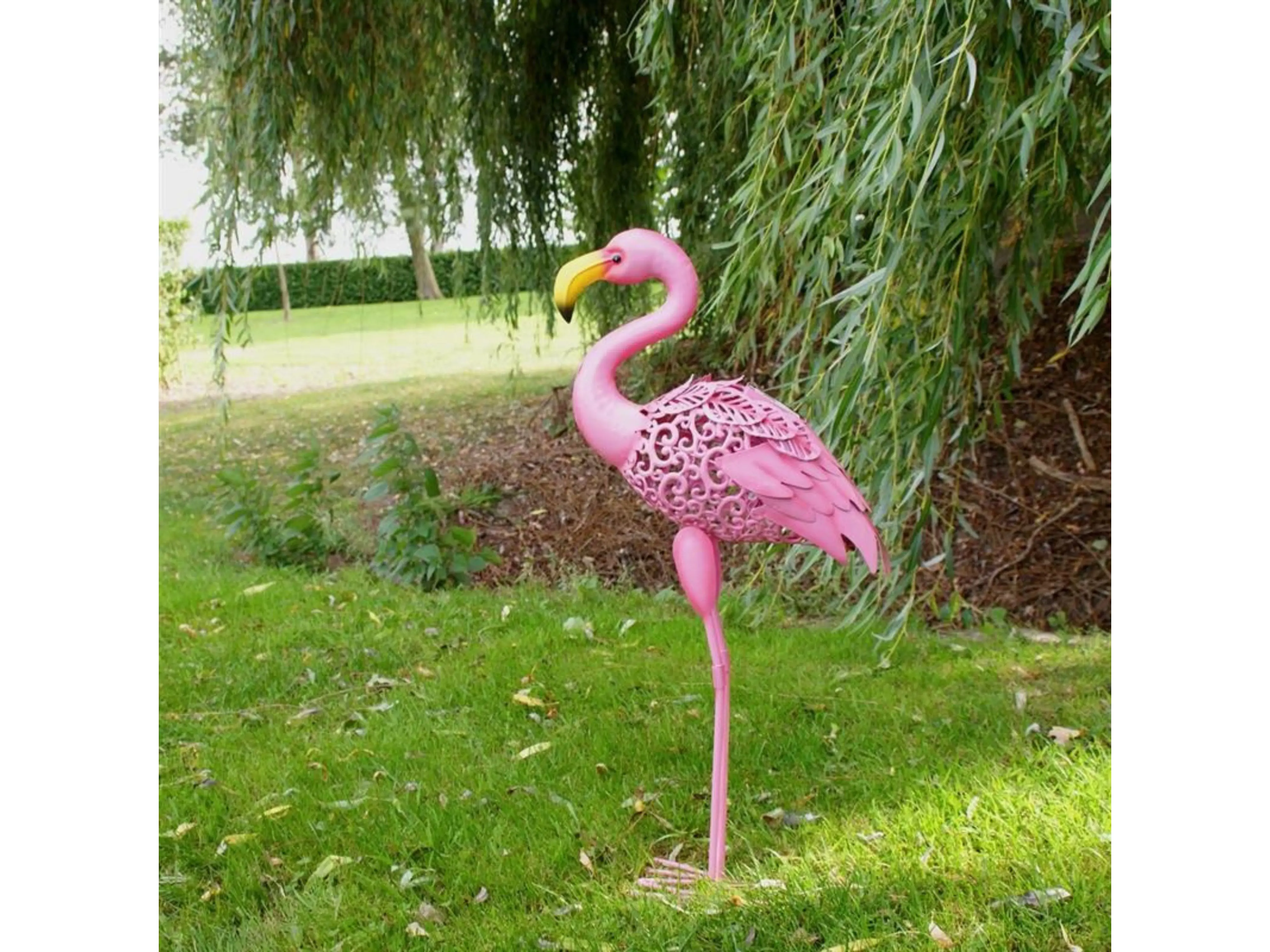Deze tropische vogel is gemaakt uit metaal met extra aandacht voor het kleurenpalet. Overdag is het een mooie tuindecoratie en het wordt een charmant sfeerlicht wanneer de avond valt. 's Avonds bij donker ontstaat er een mooi schaduwpatroon op de grond als het licht doorheen het sierlijke lijf van de flamingo schijnt.