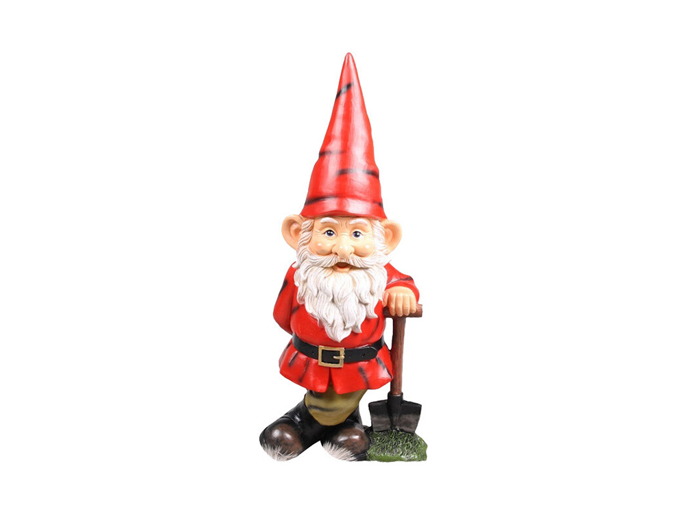 Rustend op zijn schop, staat deze tuinkabouter klaar voor de volgende tuinklus!