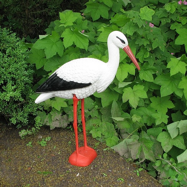 Een levensechte ooievaar op ware grootte voor in de tuin. Deze ooievaar kan een leuke tuindecoratie aan de vijver of de aankondiging van een blije gebeurtenis zijn: plaats de ooieveaar in de voortuin bij de geboorte van een baby en verwelkom zo 'de ooievaar'.
