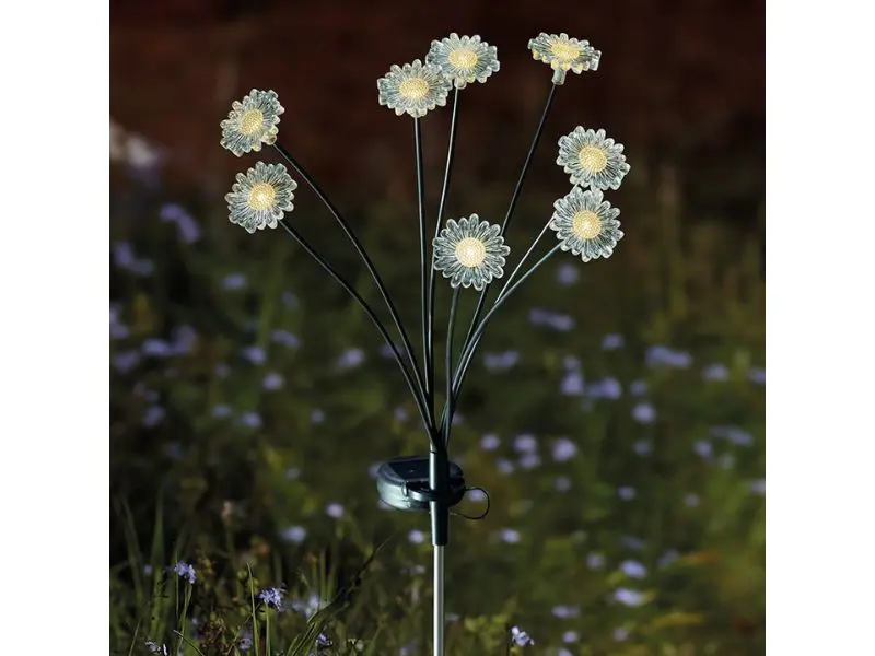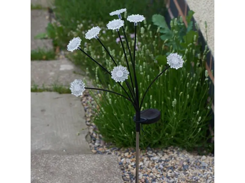 Transparante bloemblaadjes glinsteren en schitteren om elke buitenruimte een delicate, warmwitte uitstraling te geven! Perfect voor tuinpaden, opritten, terrassen, potten en bloembedden.