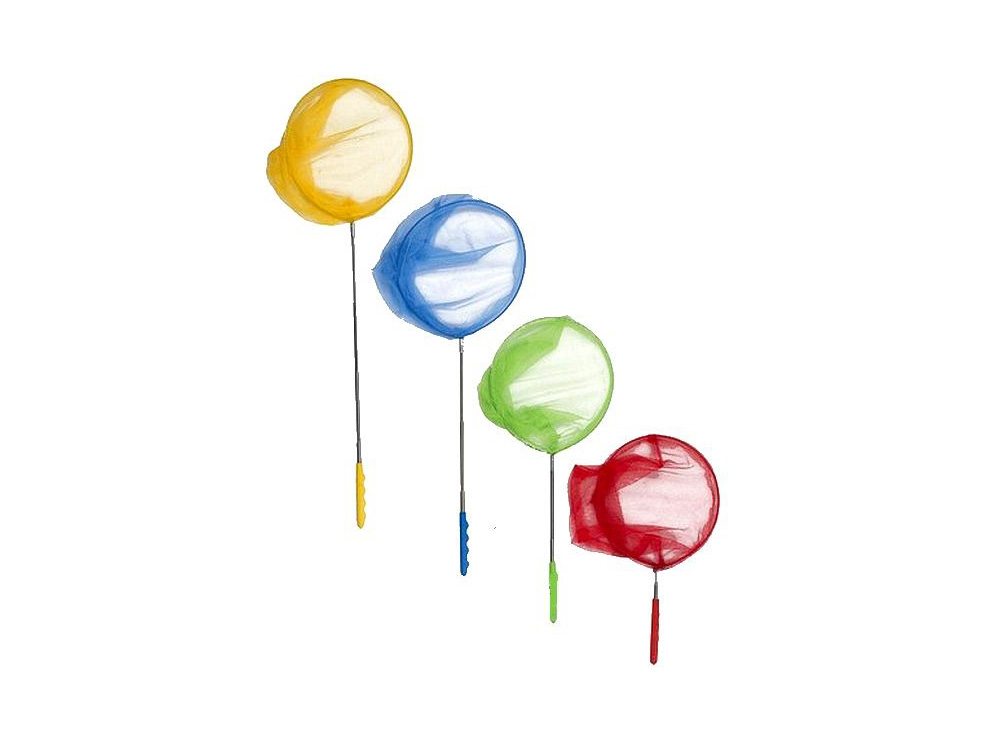 Dit vlindervangnet wordt geleverd in een willekeurige kleur: groen, blauw, geel of rood.
