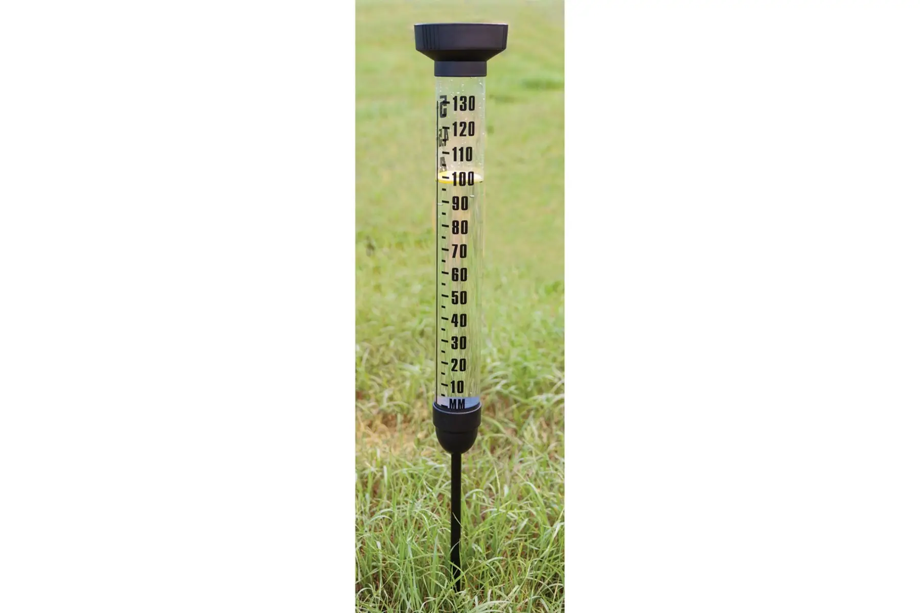 Vanaf nu kan je deze informatie gemakkelijk te weten komen aan de hand van deze grote regenmeter van Esschert Design. Prik de stok in de grond en zorg voor een open standplaats. Dankzij de gele rubberen ring in de beker is de aflezing heel eenvoudig.