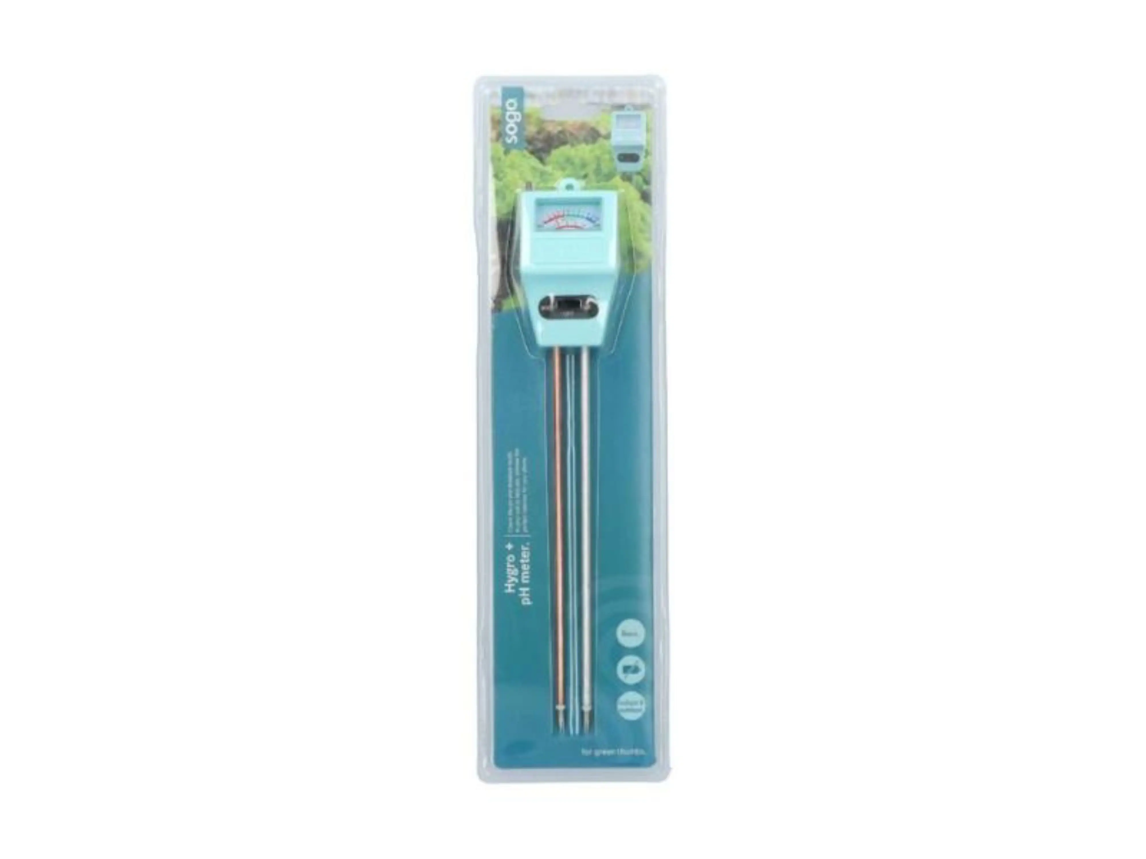 Met deze handige meter ontdek je in een handomdraai de pH-waarde en het vochtgehalte van de grond in jouw border, plantenbak, moestuin en tuinkas. Je leest onmiddellijk de waarden af en er is geen gedoe met batterijen want die heb je niet nodig!