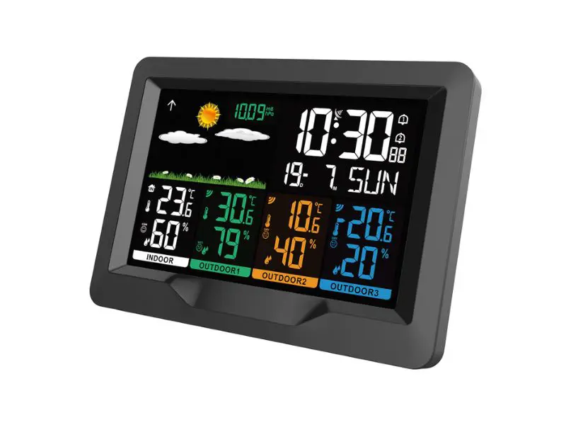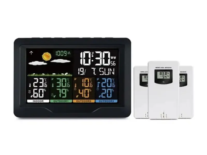 Weerstation electronisch met kleurenscherm en 3 sensoren