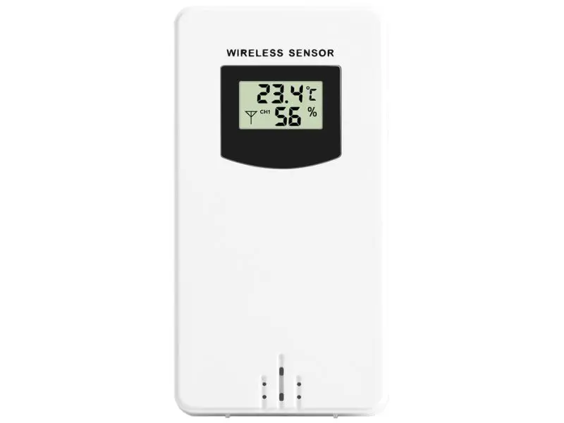 Met de drie draadloze sensoren meet je temperatuur en luchtvochtigheid op verschillende plaatsen in huis, in de serre of in de tuin. Elke sensor heeft een bereik tot wel 60 meter en toont ook minimum- en maximumwaarden voor een gedetailleerd overzicht.